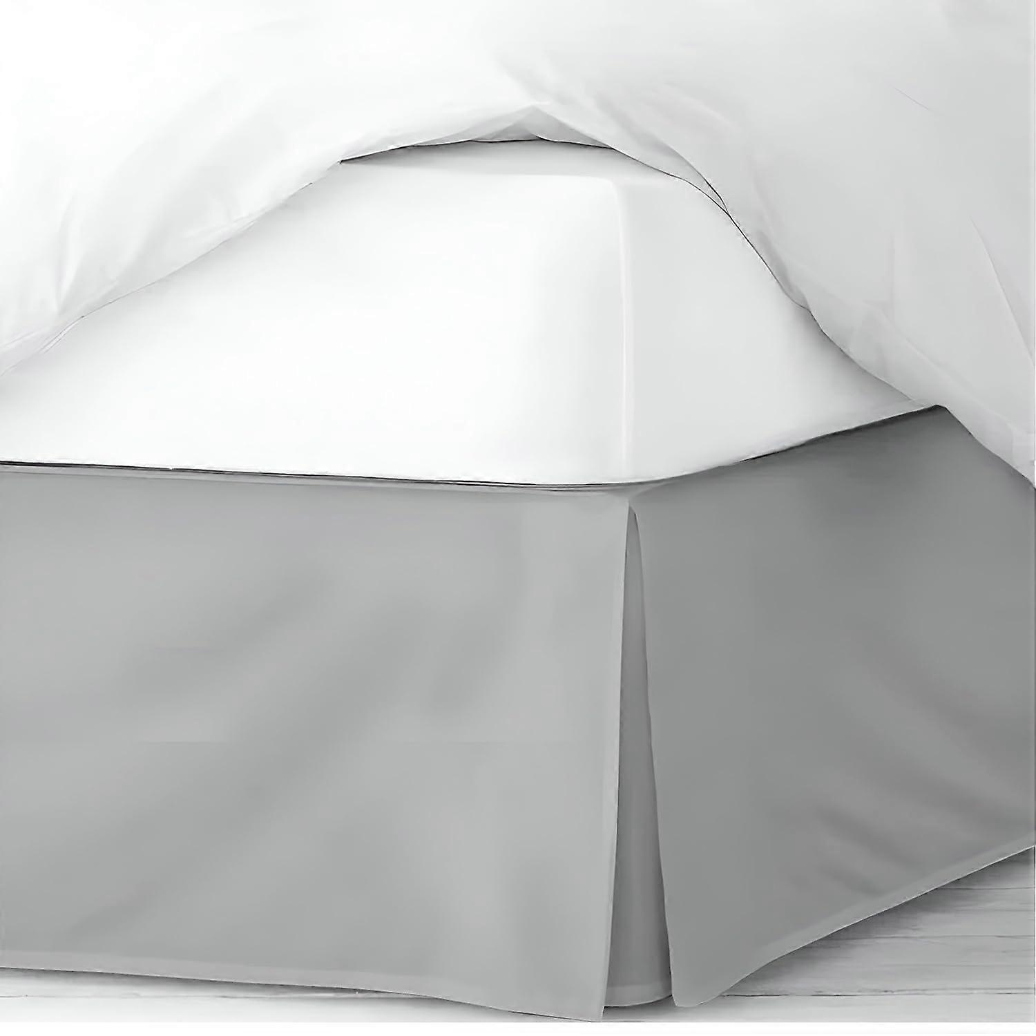 King Size Pleated Bed Skirt 16 Inch Drop Light Grey, Wrinkle Resistant Microfiber, Tailored Design for Hotel Elegance and Dustproof Fit