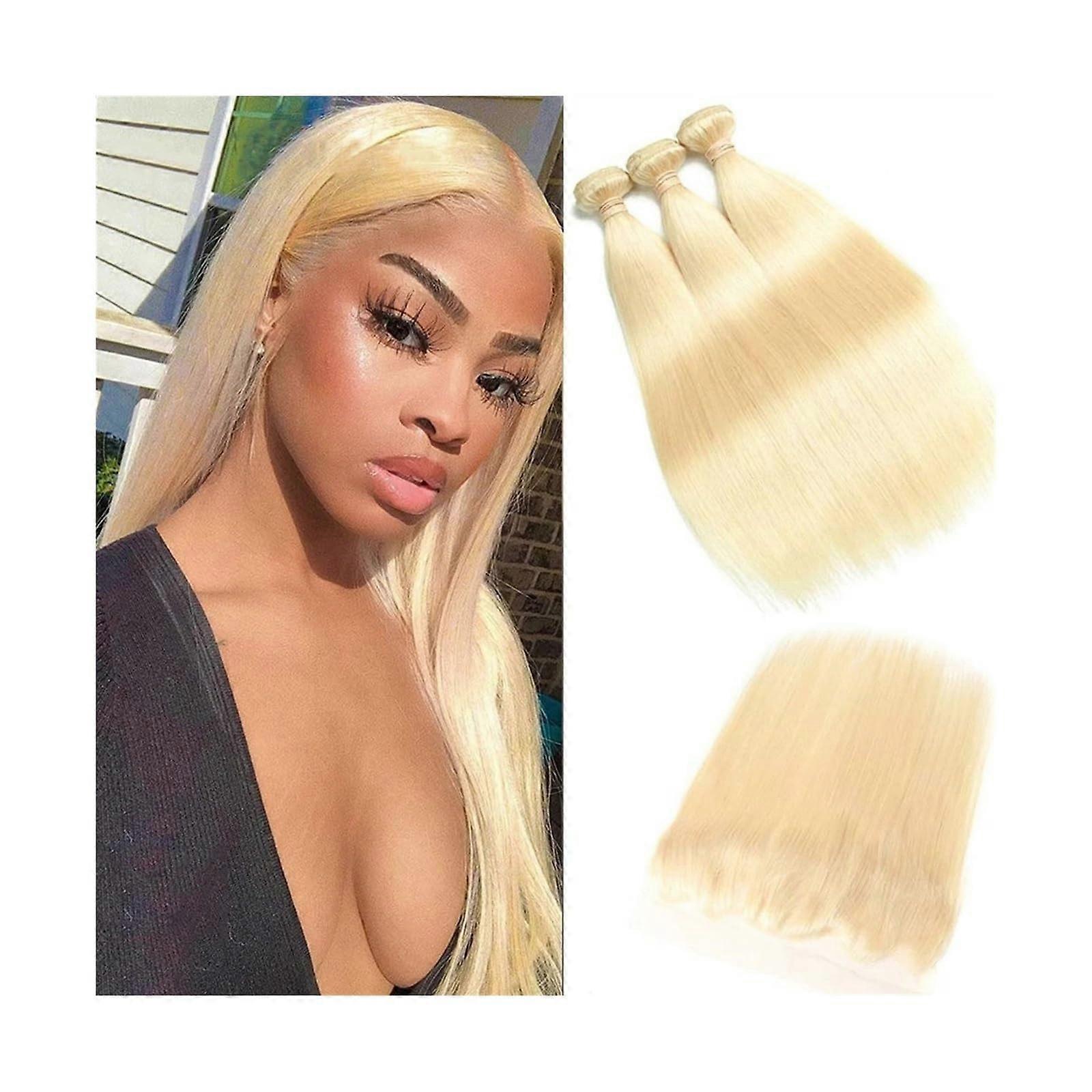 613 Blonde Human Hair Bundles with Closure Brazilian Straight Extensions Full Volume Softness