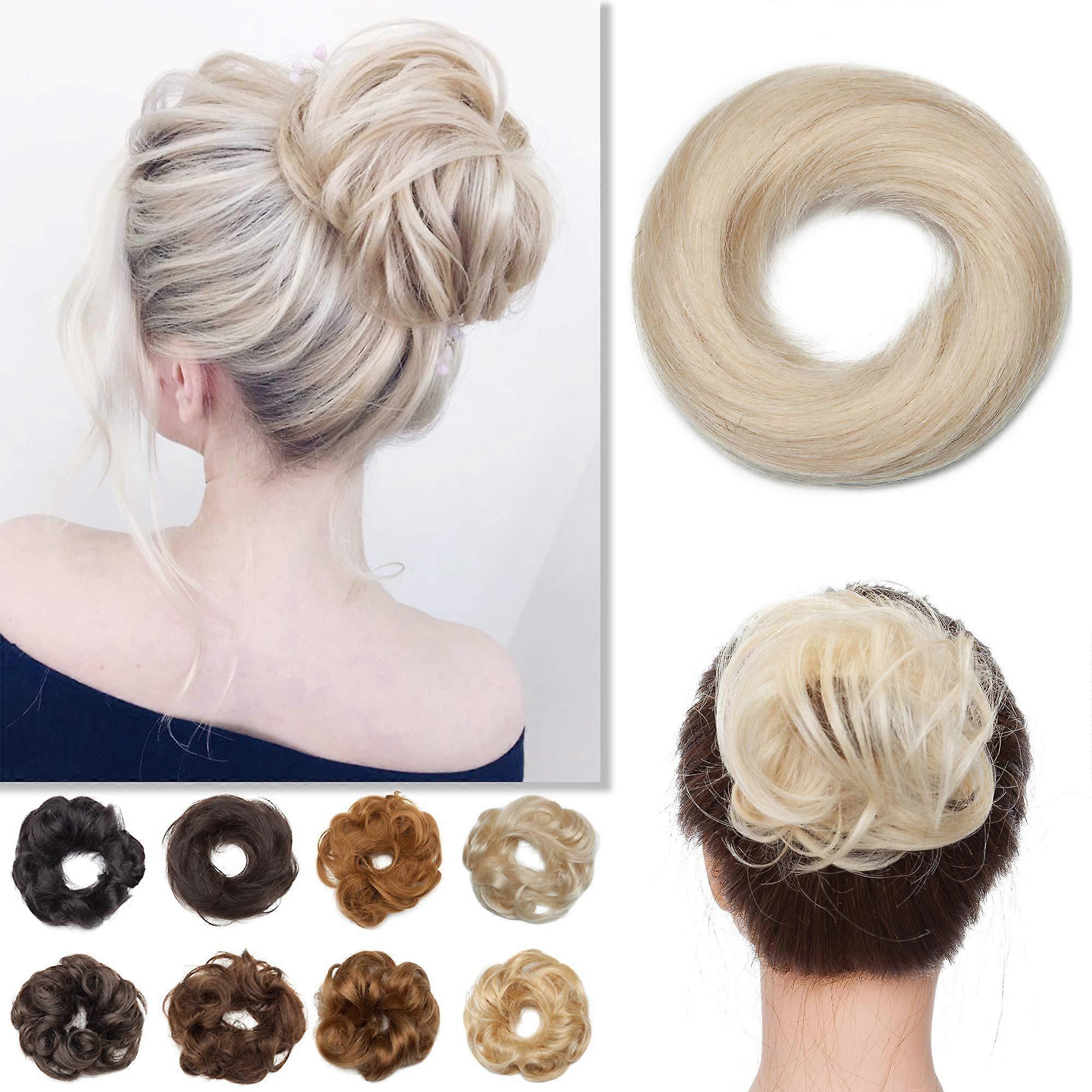 Real Human Hair Bun Extension Platinum Blonde Wavy Chignon Hairpiece for Women Wedding