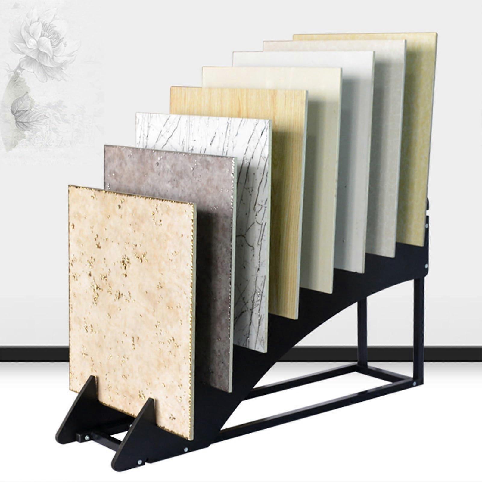 MultiLayer Floor Tile Display Rack with Wooden Floor Sample Holder, 17Slot Porcelain Stand 116x53x60cm