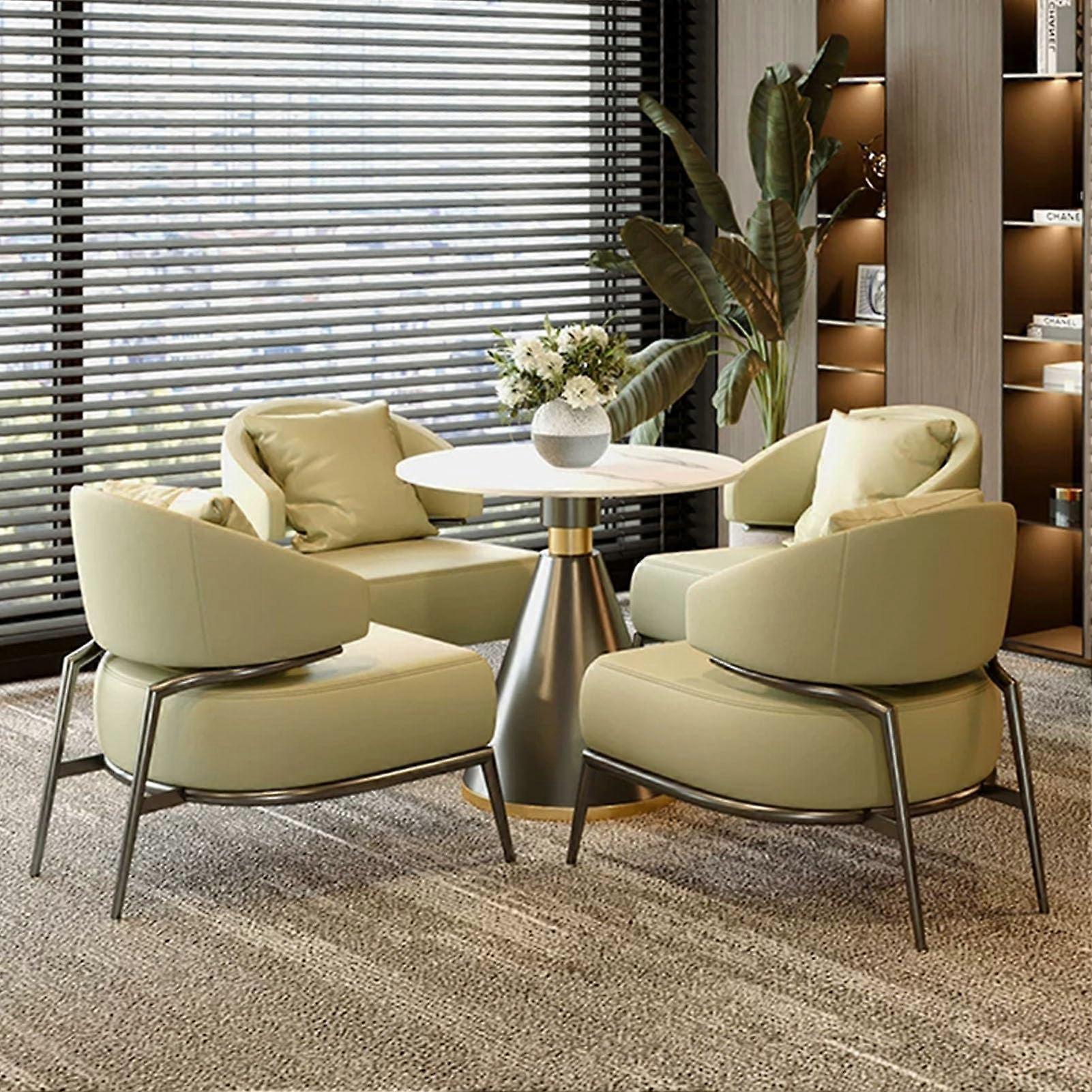 Office Table and Chairs Set, Modern Round Design with 4 Leather Seats, Compact Meeting Setup, Beige