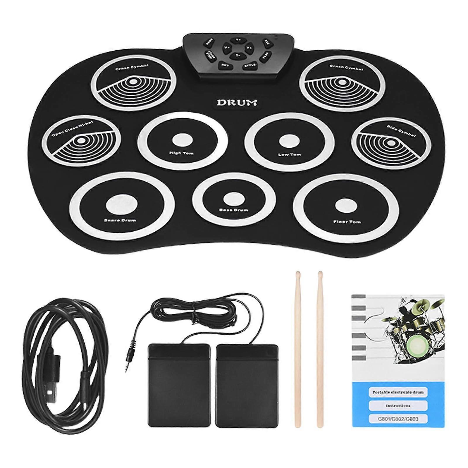 Electronic Drum Set for Kids with Nine Pad Layout, Roll Up Design, Built In Speakers, USB Powered