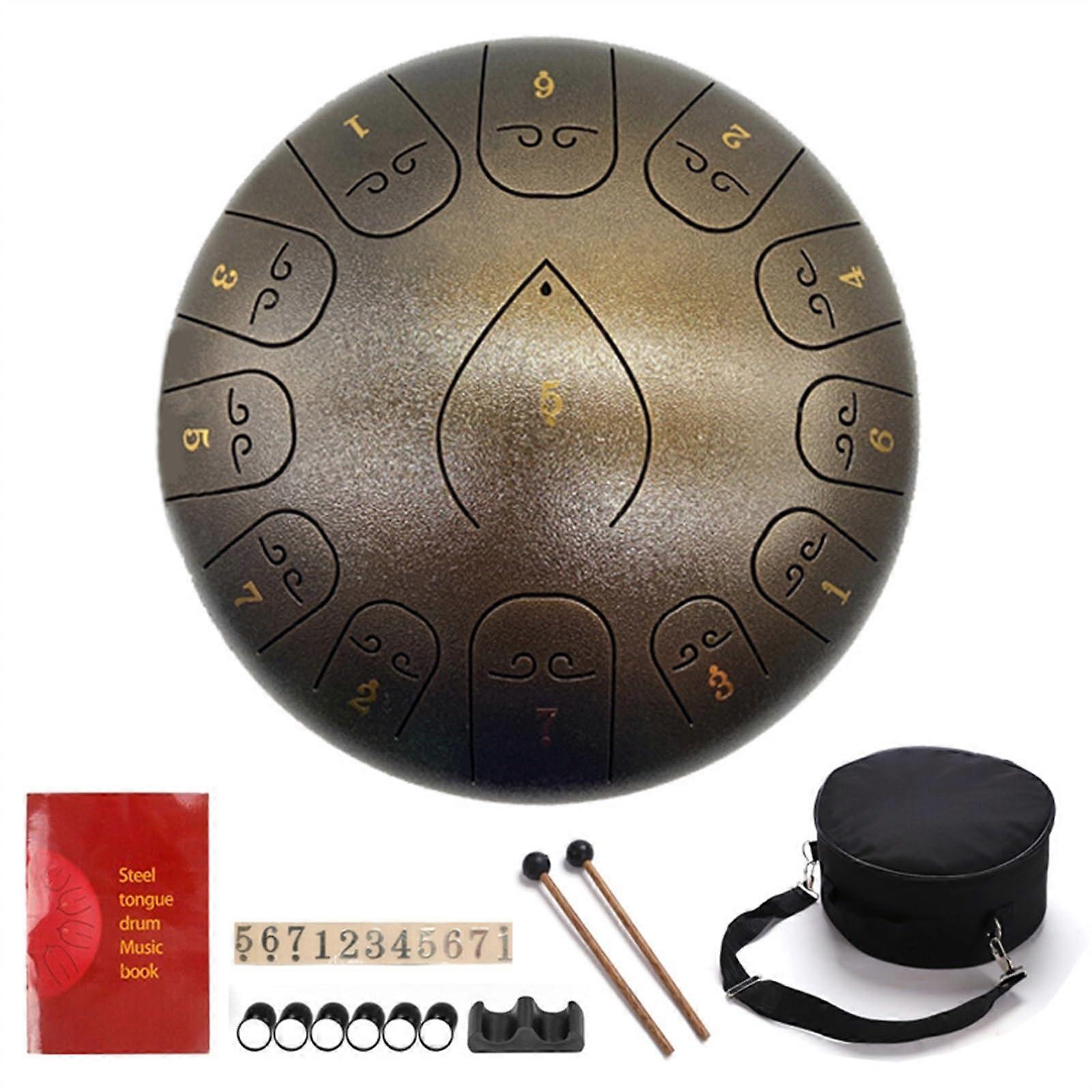 12 Inch 13 Note Steel Tongue Drum Handpan for Meditation Yoga Brown with Mallets and Bag
