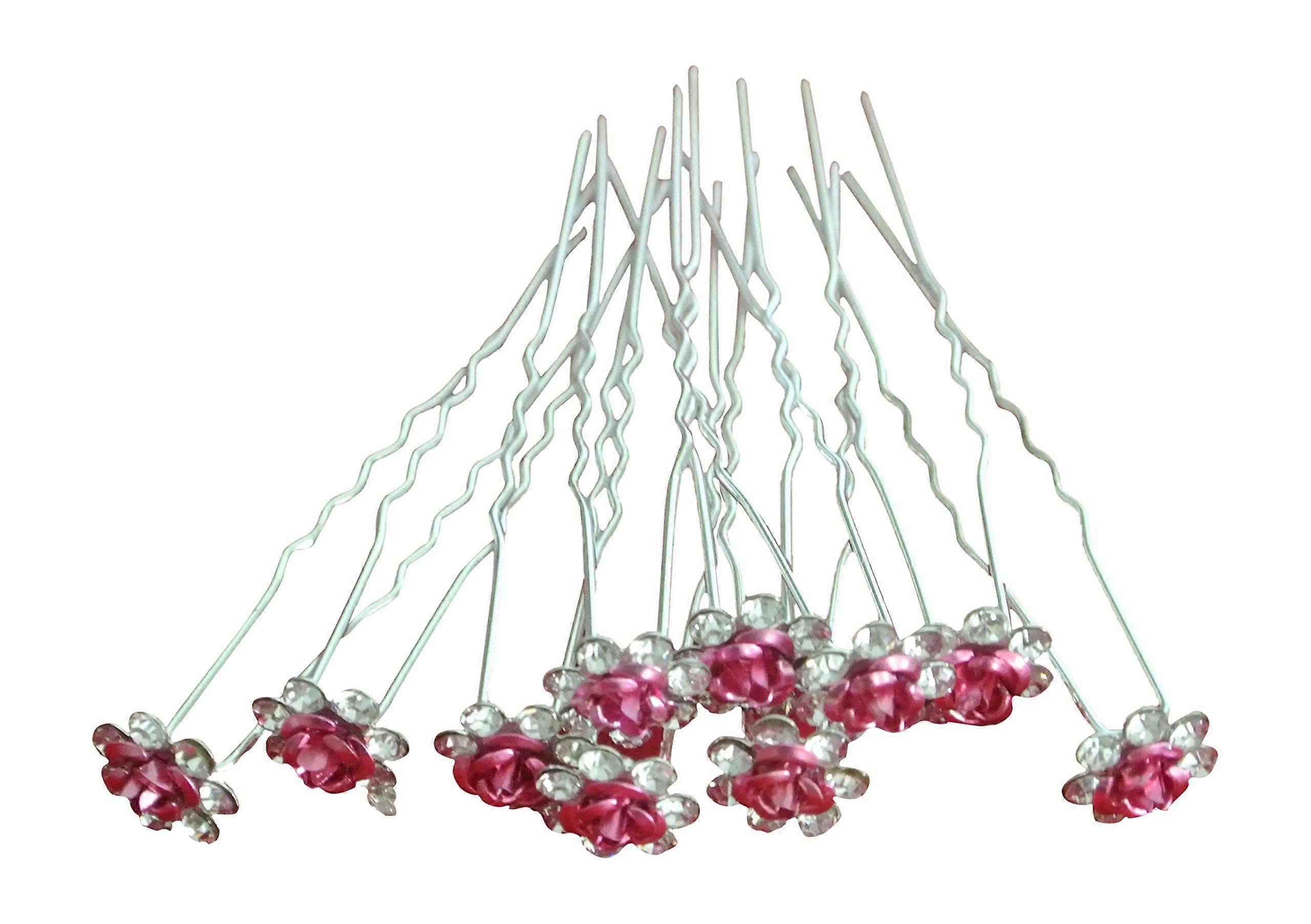 Pink Rose Crystal Hair Pins Bridal Hair Accessories Set of 10 for Wedding Veil