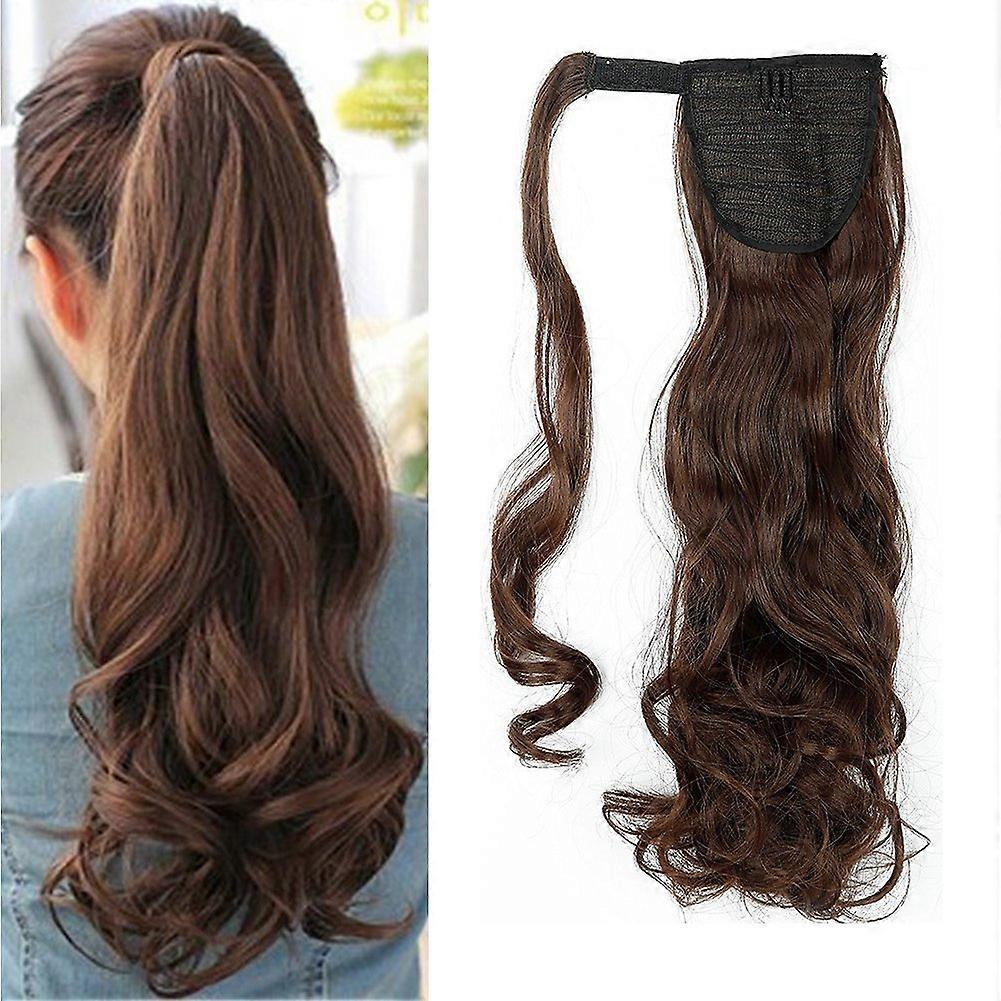 24 Inch Long Wavy Ponytail Hair Extension for Women, Medium Brown Clip In Wrap Around Hairpiece