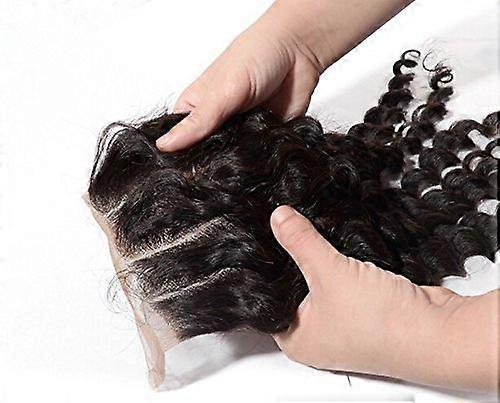 10 Inch Deep Wave Lace Front Closure Virgin Human Hair Extensions Natural Color Full Volume