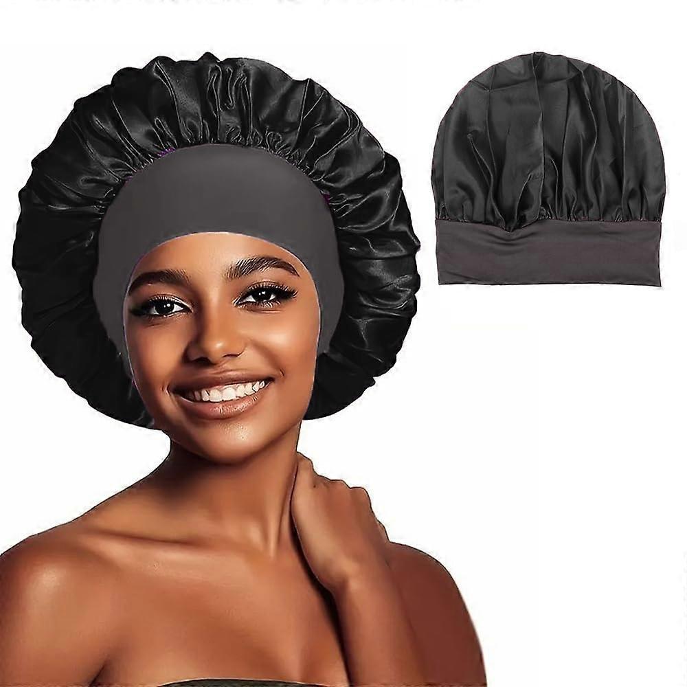 Silk Sleep Bonnet for Curly Hair Women, Black Satin Hair Cap with Smooth Surface and Elastic Fit