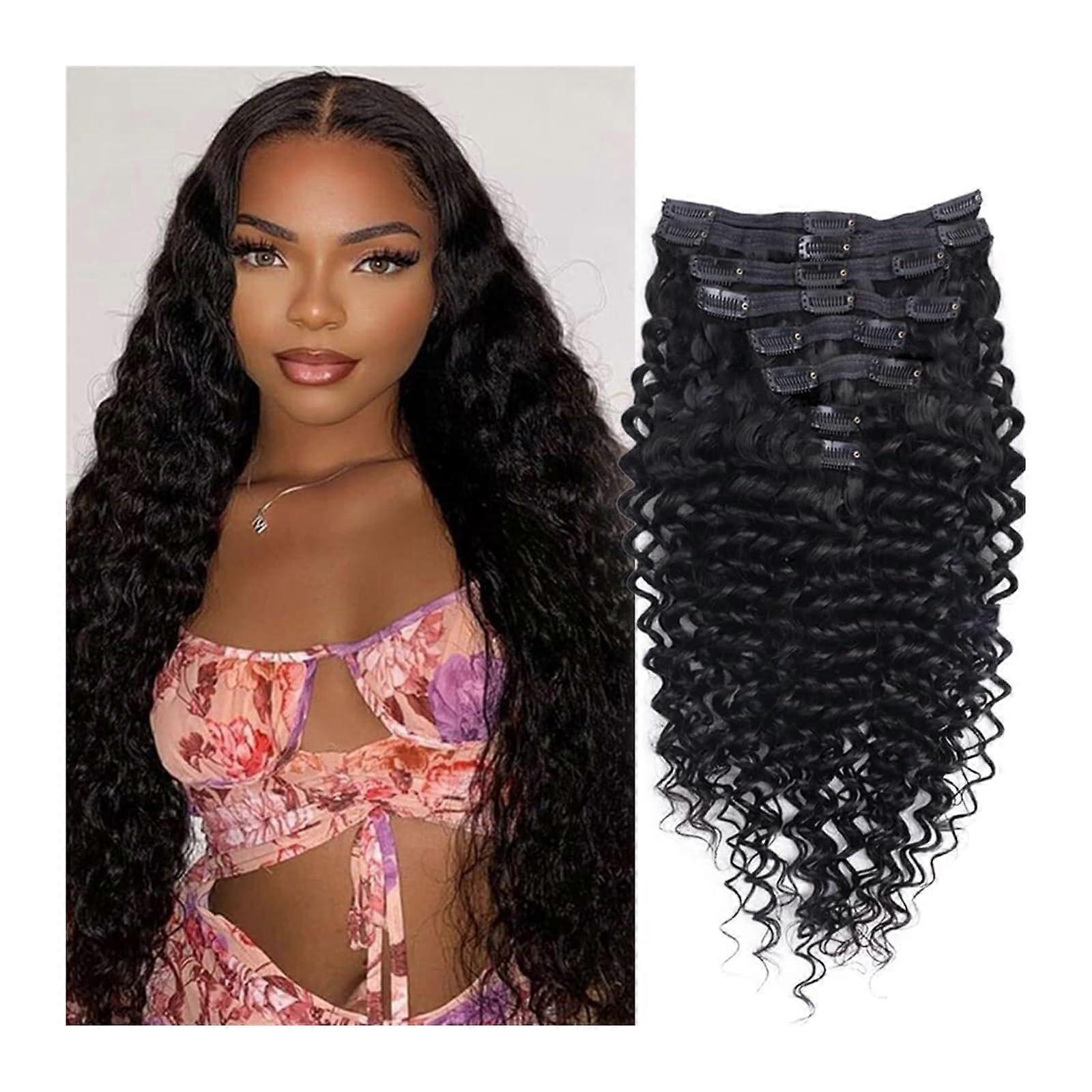 14 Inch Deep Wave Clip In Human Hair Extensions Brazilian Remy Double Weft 8pcs 120g for Women