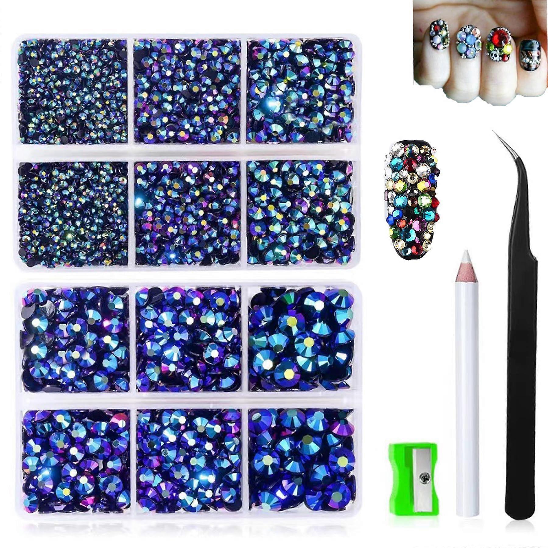 Blue Crystal AB Rhinestones SS6SS30 Multiple Sizes for Nail Art Jewelry Crafts with Storage Box