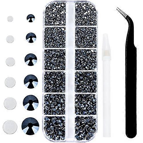 Flat Back Nail Art Rhinestones Set with Tweezers and Pen, Mixed Sizes SS6–SS20 Glass Crystals