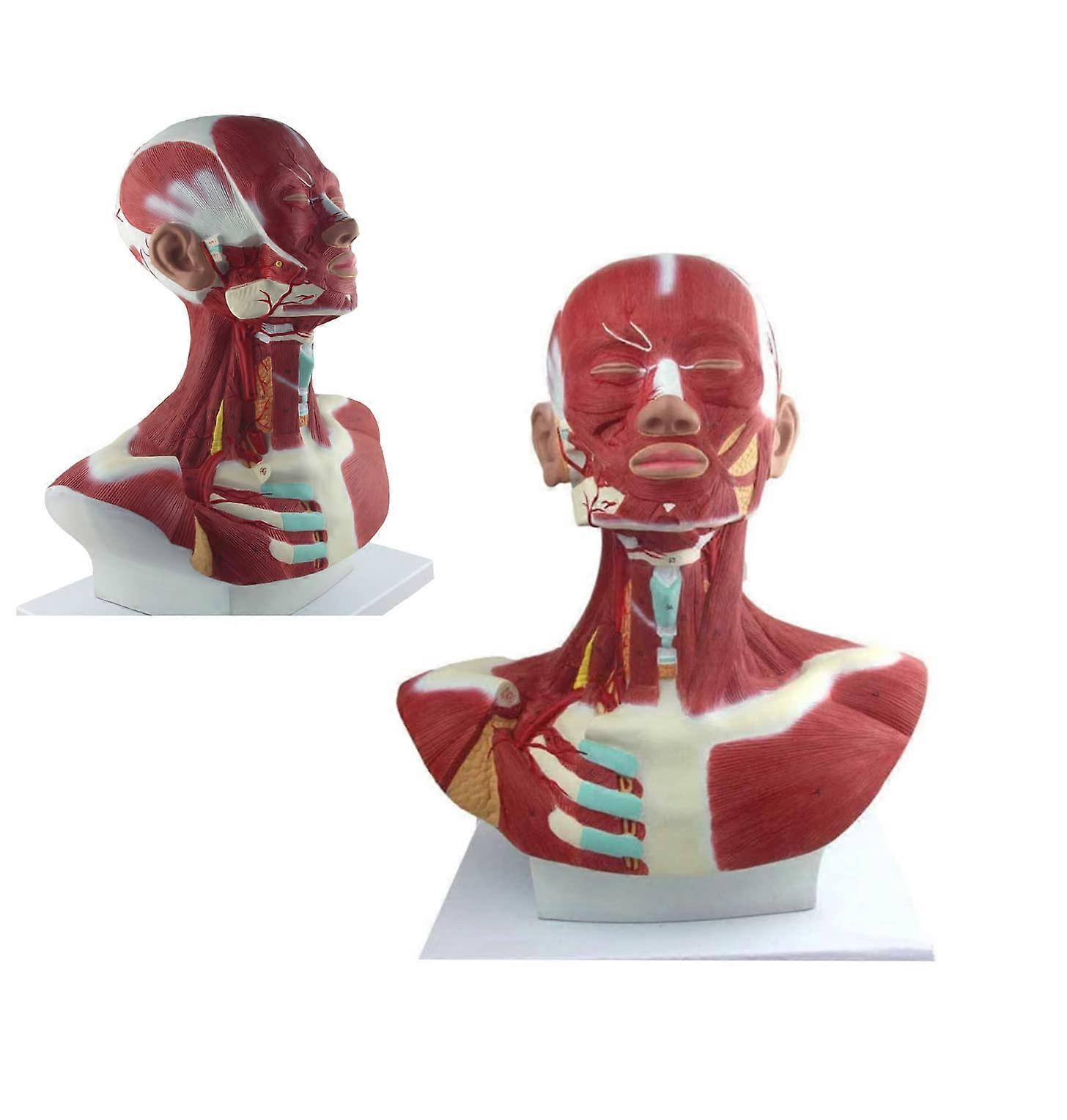 Human Head and Neck Muscle Anatomy Model with Arterial Details and Digital Marking for Training