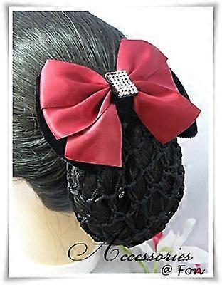 Ballet Hair Accessories Velvet Bow Barrette with Snood Hair Net for Dance Performances Red