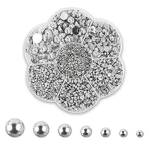 Flatback Pearls for Crafts and Nail Art, Half Round Multi‑Size Set 2‑10mm Silver Smooth Finish