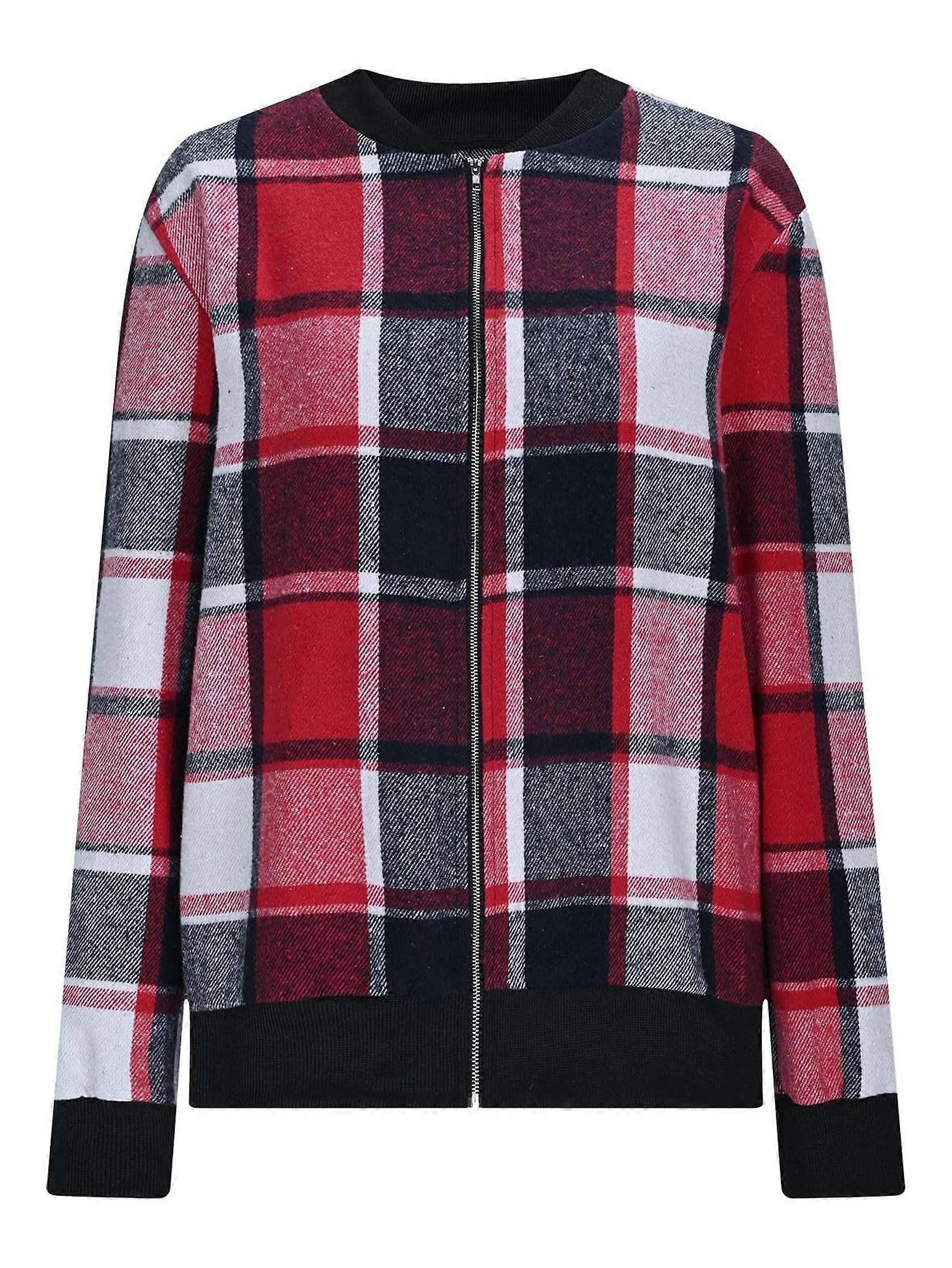 Shackets for Women Casual Zip Up Flannel Plaid Jackets Long Sleeve Baggy Outwear Coat Fall Clothes Red S