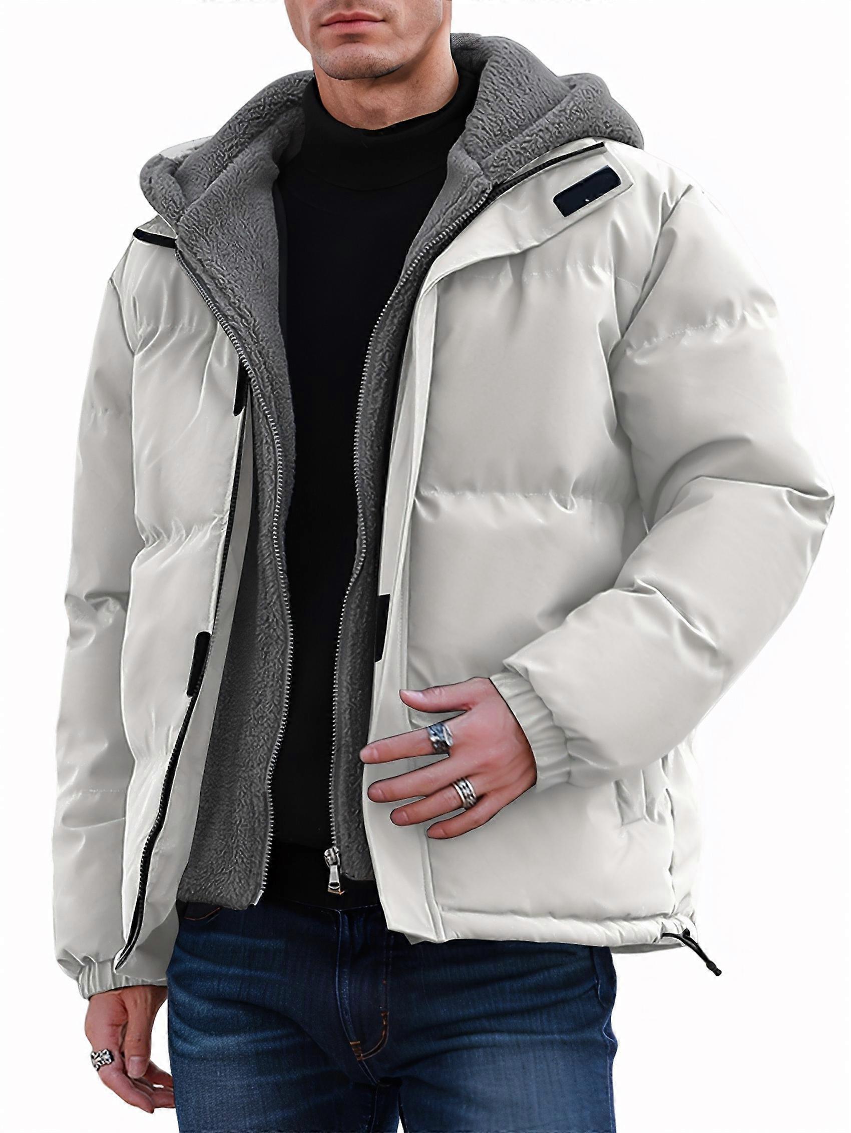 Men'S Hooded Winter Puffer Jacket, Windproof Thermal Coat with Easy Hook-and-Loop Closure Beige XXXL