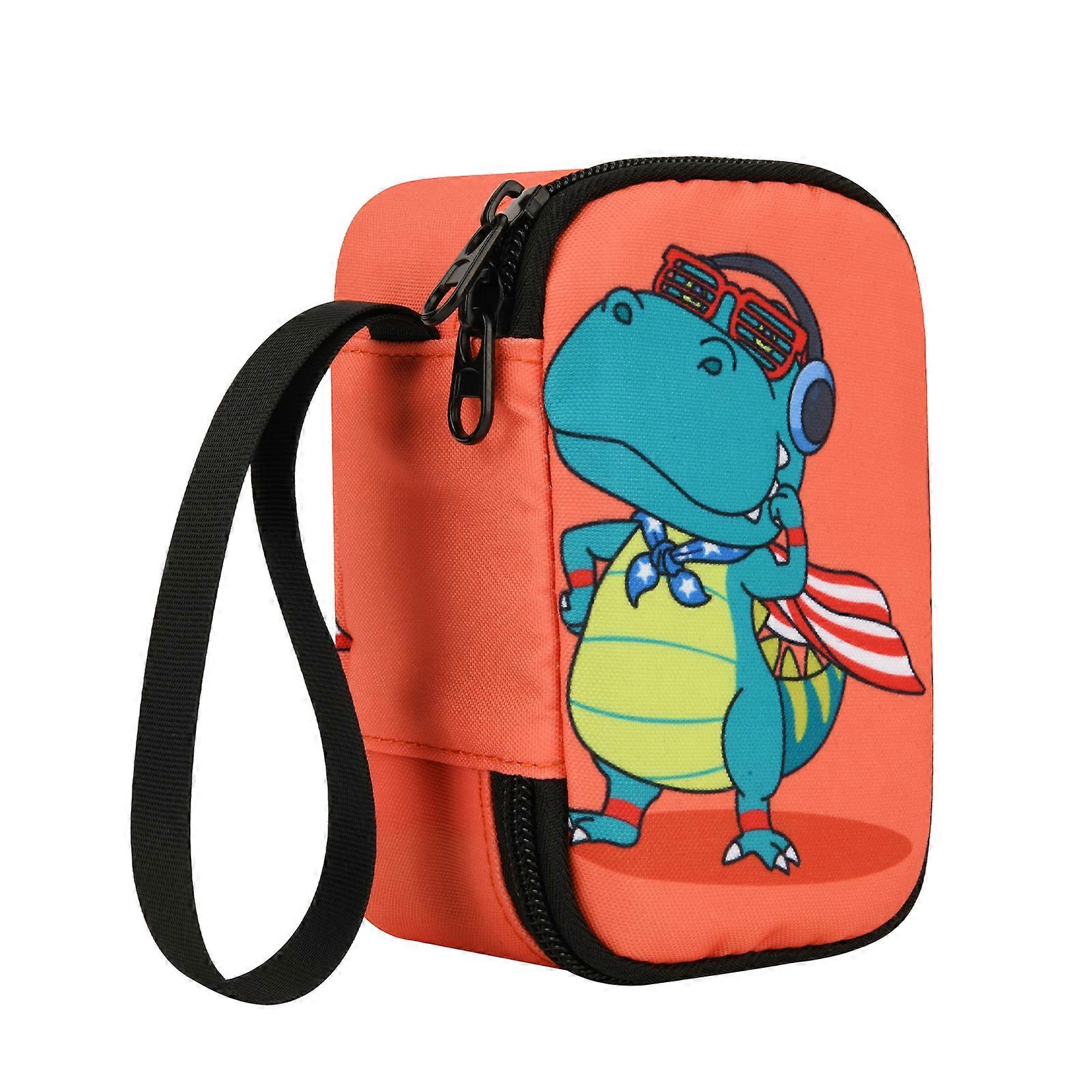 Features: This storage bag securely holds the device, cards, and accessories, preventing loss and making travel hassle less with its kid friendly features. Crafted from nylon fabric with orangeness dinosaur prints, it includes metal zippers for smooth operations, internal elastic straps to firmly secure contents and resist daily wear and tear. Ideal for children and parents, this organizers features a fun dinosaur theme that captivates kids' interest, addressing the dullness of standard storage solution while keeping essential safe. Suited for family trips, home organization, or daily commutes, it ensures kids enjoy stories on the go in a practical and engaging way, enhancing travel experiences. Equipped with an adjustable shoulder strap for crossbody or single shoulder carrying, this versatile bag also accommodates small toy or school supplies, boosting its utility as a multipurpose kids accessory. Specifications: Component: canvas + nylon Size:Approx.15x9x6cm/5.9x3.54x2.36inch Color: orangeness For Music Player Suitable for bedroom, living room, travel and other scenarios, suitable for parent-child travel or home storage Package Includes: 1pcs Storage Organizers note: 1.Please allow 1-2cm errors due to manual measurement, make sure that you donot mind befores you order. 2.Due to the differences between different monitors, the picture may not reflect the actual color. Thanks for your understandings.