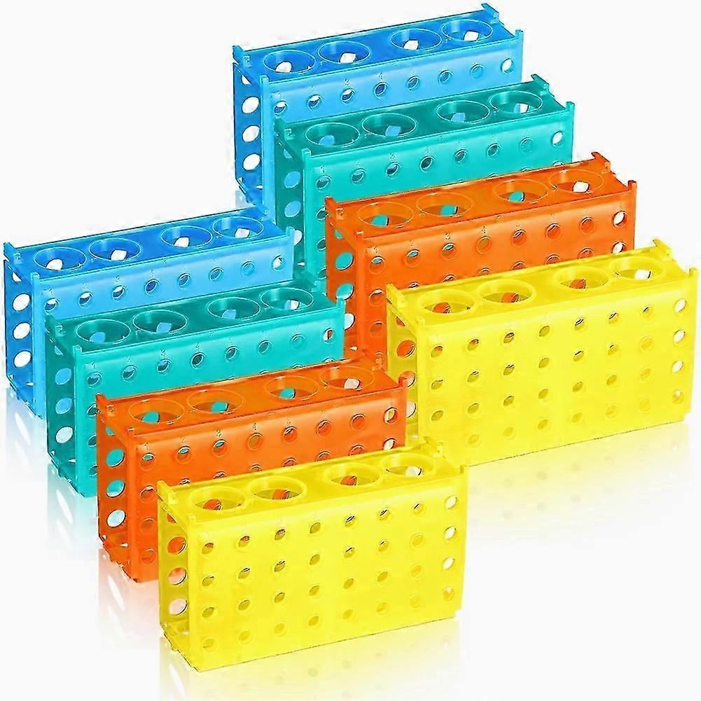 An 8-piece, 4-way, multi-tube test tube holder and a centrifuge rack for a 0.5-, a 1.5-, a 10-, and a 50-ml tube.