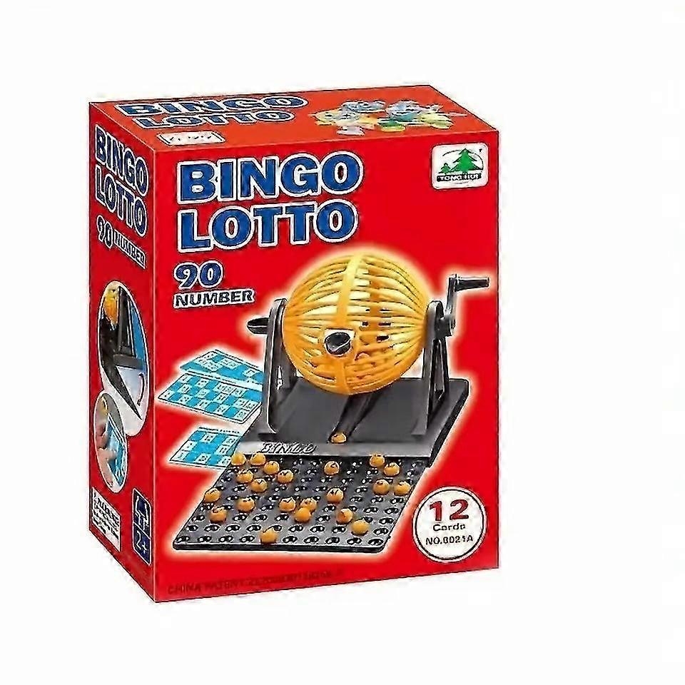 A deluxe bingo and a lottery machine-game set with a cage and a mini-chip, perfect for a family party.