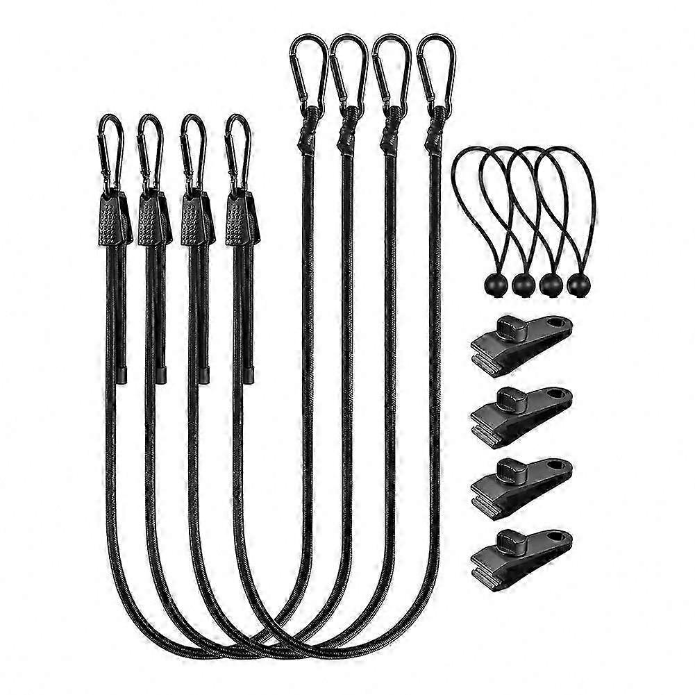 Adjustable Black Bungee Cords with Hooks, 48 Inch Elastic Straps for Tarps with Clips (12 Pcs)