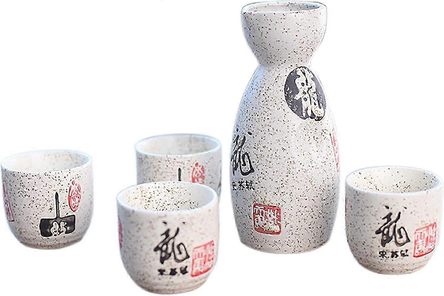 Traditional Japanese Sake Set: 4 Cups & 1 Porcelain Carafe with Kanji Ideogram, Asian Zen Style (2026 Suitable)