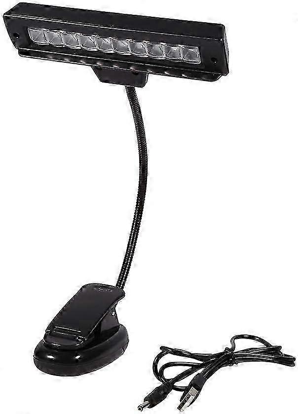 Clip-On Book Light with 10 LEDs, USB Rechargeable Portable Reading Lamp for Music Stand & Clamp-On Use