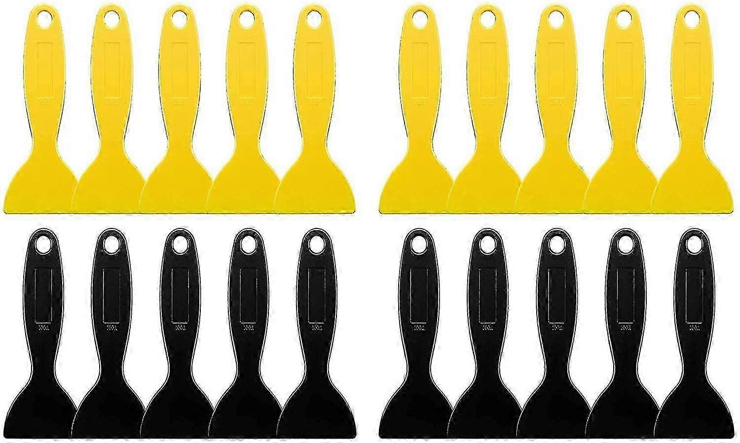 Sufficient quantity: this set includes 20 pieces plastic spatulas in yellow and black, sufficient quantity can be applied in different ways, the flexible paint stripping tool is extremely durable and does not rust compared to knives stainless steel putty knife. Easy to use: The handy and practical plastic putty knife is easy to use and clean, ideal for home or kitchen use. the putty knife is made of plastic, it is lightweight, easy to use and carry. Lightweight and flexible plastic: the plastic spatula knife is made of plastic, makes it light and easy to use and carry. store in smaller spaces; Applied to patch the ceiling hole that deforms so easily and gets a smooth finish. Good Quality: These cutters are made from sturdy plastic that won't bend or break under pressure. So they are not rusty enough to withstand tough resins and thick enough to withstand harsh substances. Multifunctional use: the plastic putty knife measures 13.4 x 5.9 cm (5. 28 x 2.32 inches), multiple applications for sticker installation, air bubble removal, vinyl or wrap installation tool, work or car, and car repair. mobile phone.