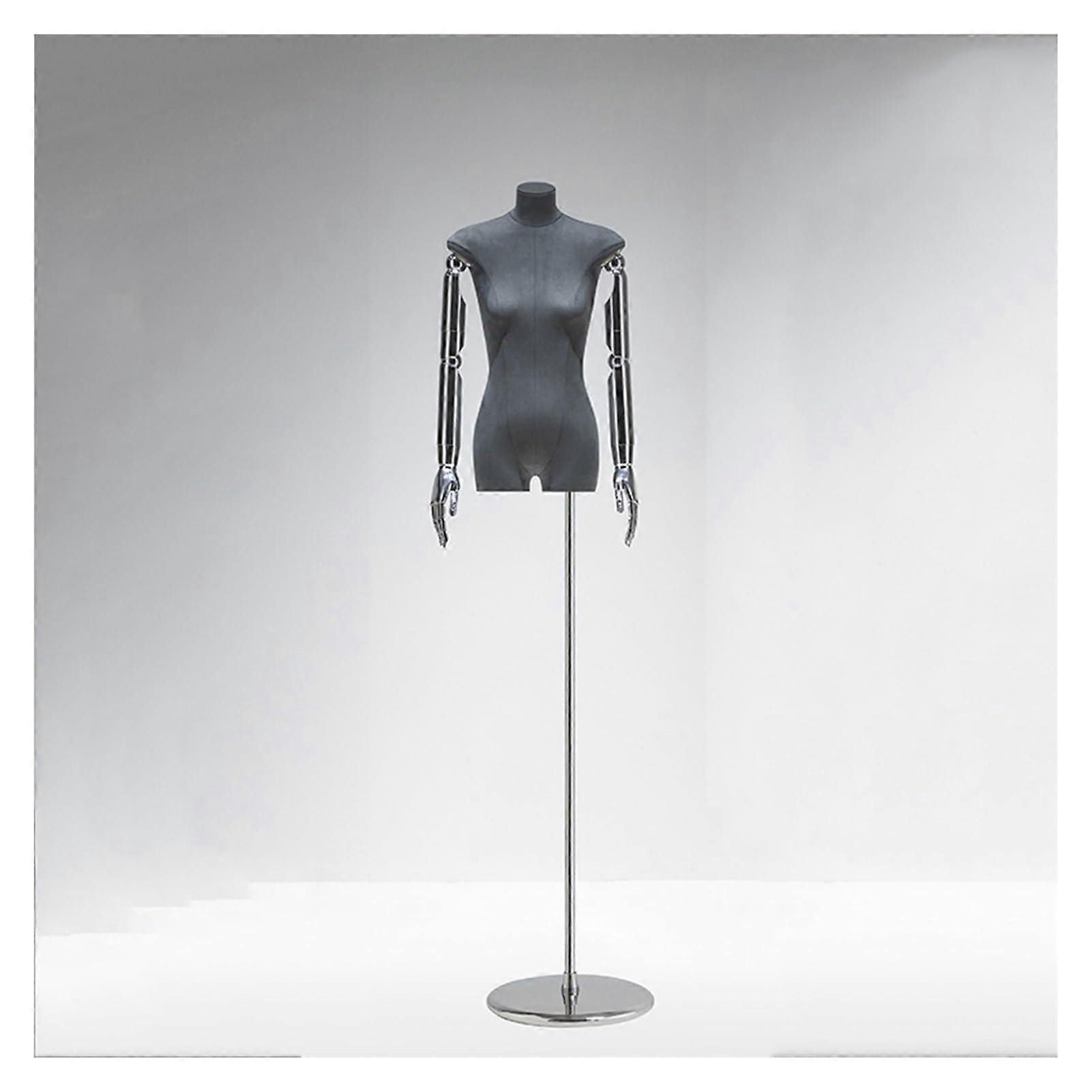 Female Mannequin Torso with Detachable Arms, Adjustable Dress Form on Stable Metal Base, Gray Suede