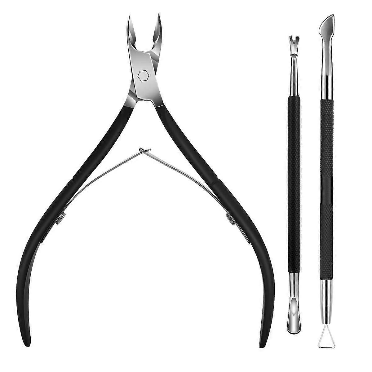 Professional Stainless Steel Cuticle Trimmer and Pusher Set, 3 in 1 Manicure Tool for Nails
