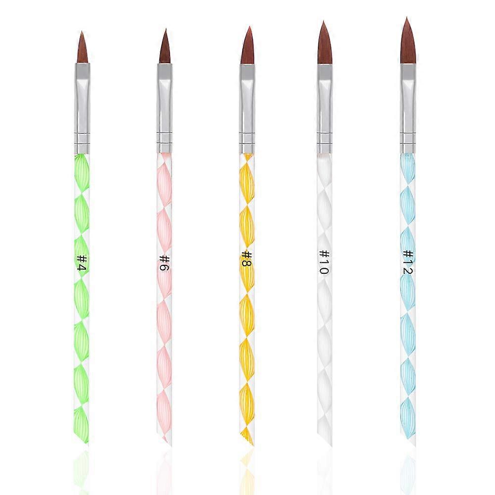 Nail Art Brush Set 5pcs Acrylic UV Gel Brushes with Crystal Handle for Precise Detail Painting Silver
