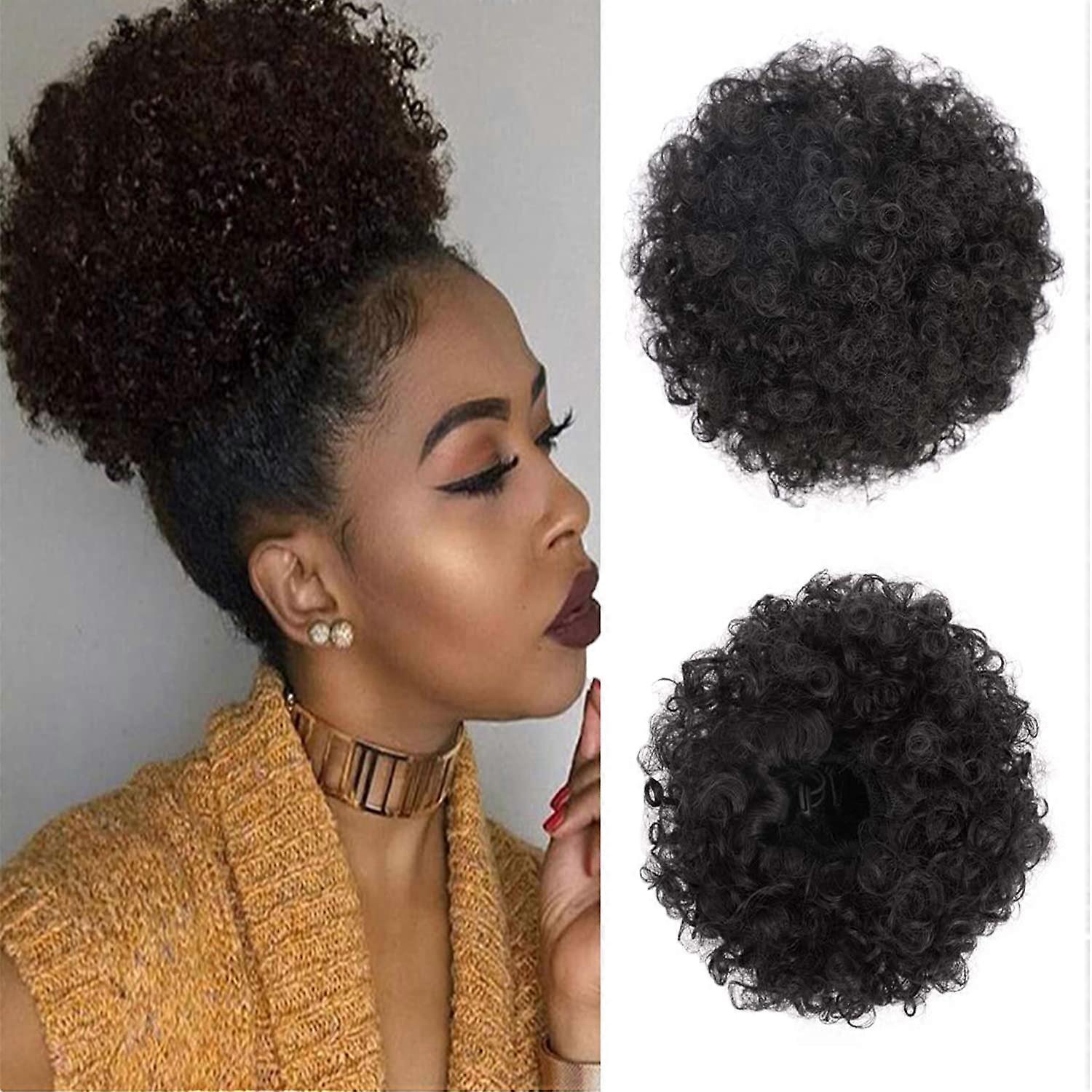 Afro Puff Hair Extension Afro Kinky Curly Drawstring Ponytail with Two Clips for Natural Look