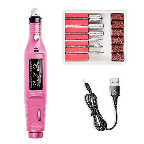Electric Nail Drill USB Rechargeable Pink Professional Manicure Pedicure Kit 20000 RPM