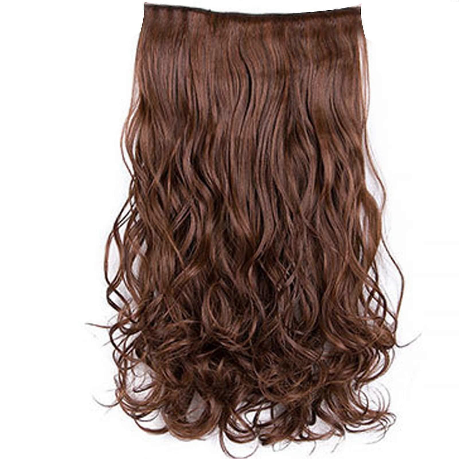 Light Brown 23.6 Inch Synthetic Wavy Clip in Hair Extensions with Secure 6Clip Hold, Heat Resistant Fiber