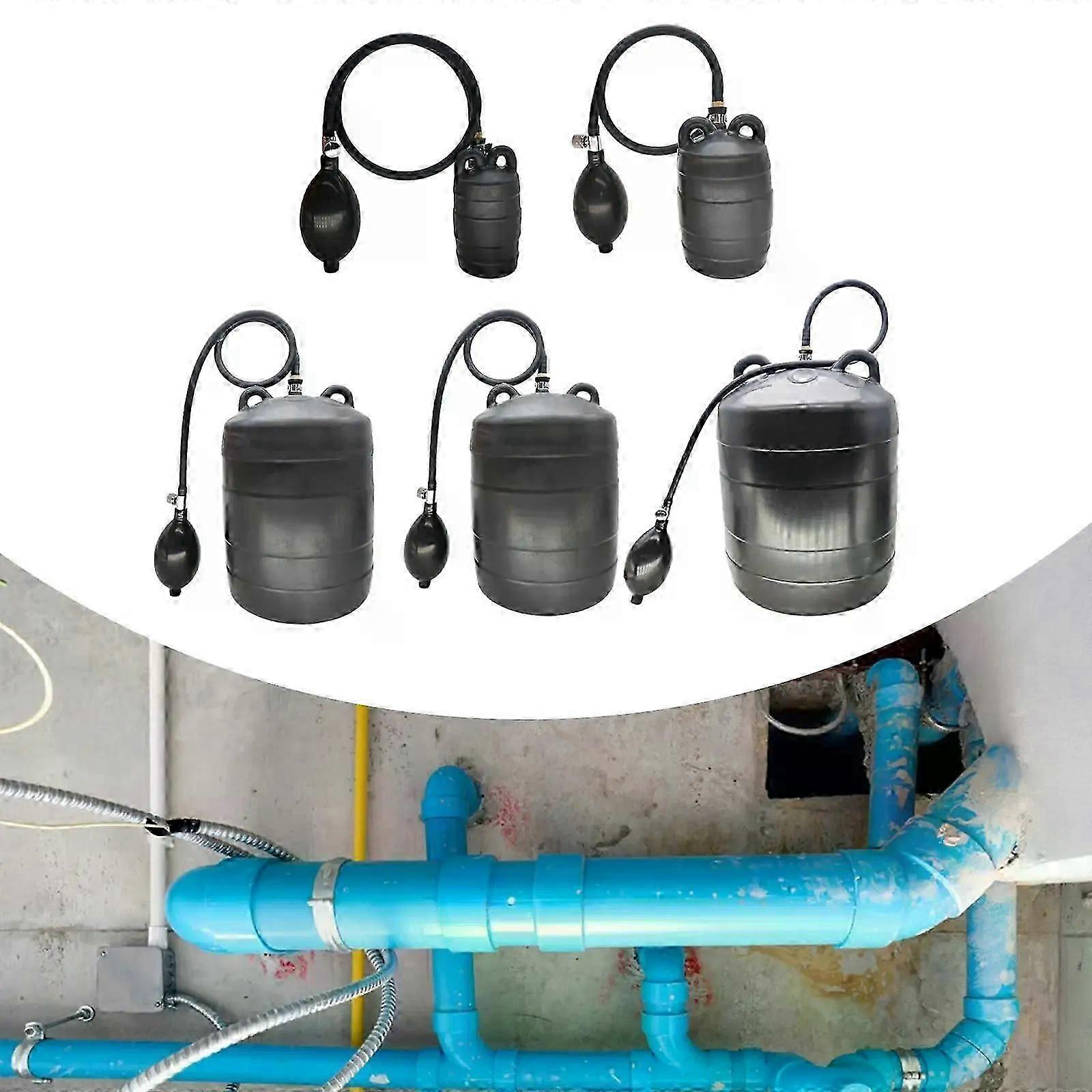 Inflatable drain plugs made of natural rubber, suitable for pipes with diameters of 50, 75, 110, 160 and 200 mm; robust, durable and easy to use; pipe
