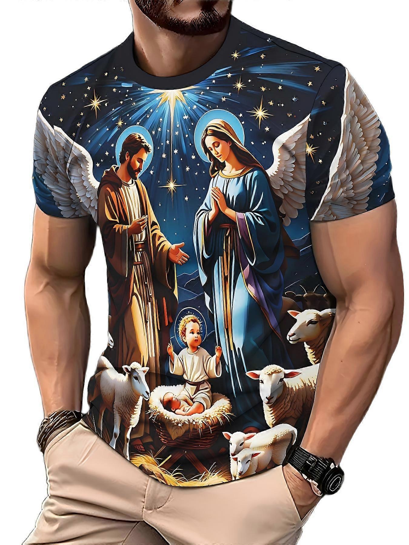 Men’s 3D Print Warm Design T Shirt Star Nativity Print Casual Spiritual Daily Top