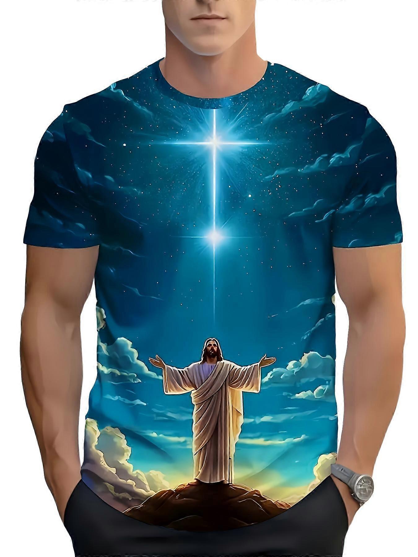 Men’s 3D Print Celestial Graphic T Shirt Cross Star And Figure Print Casual Faith Tee