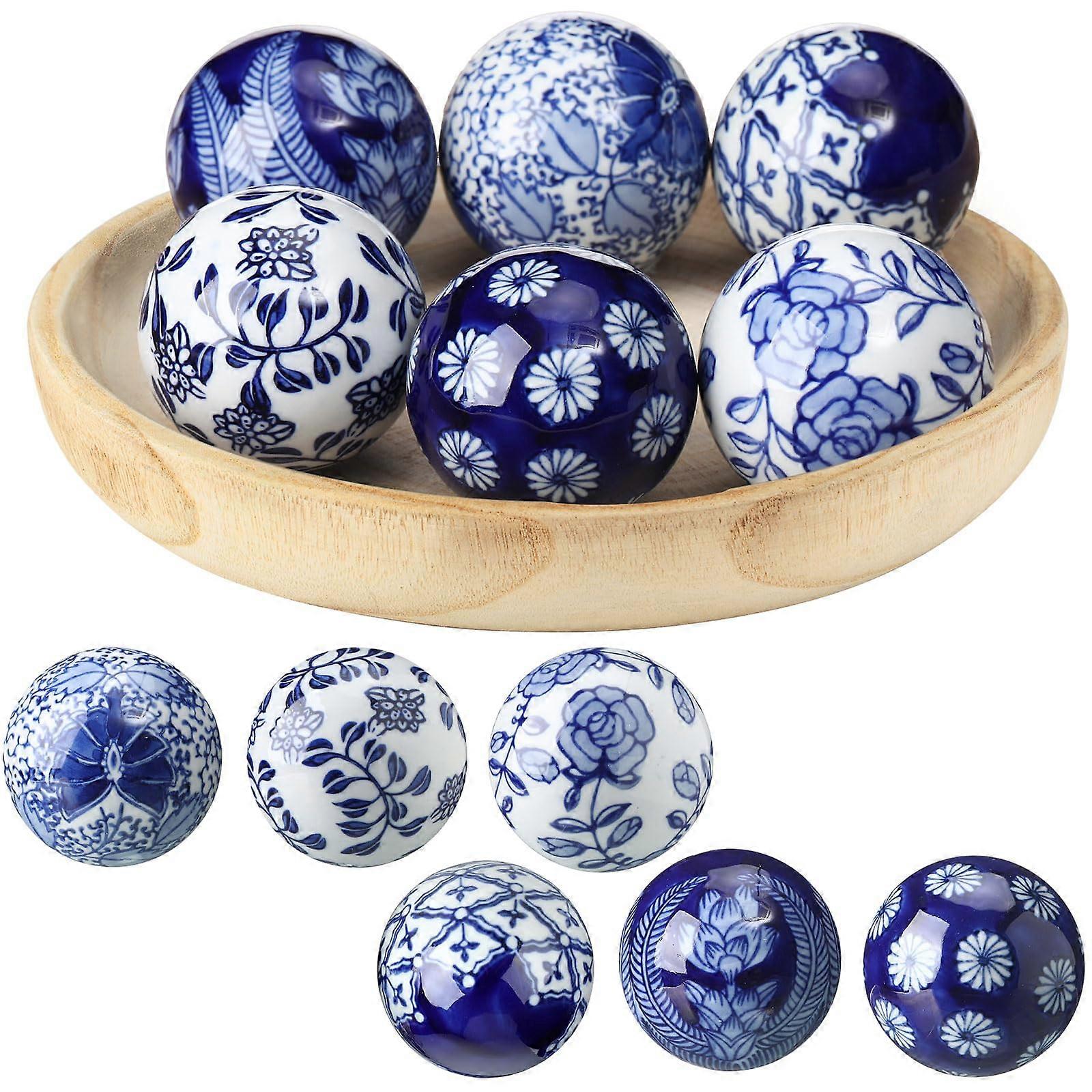 6 Pieces Blue and White Porcelain Balls Elegant Ceramic Orbs for Centerpiece Bowls and Home Decor