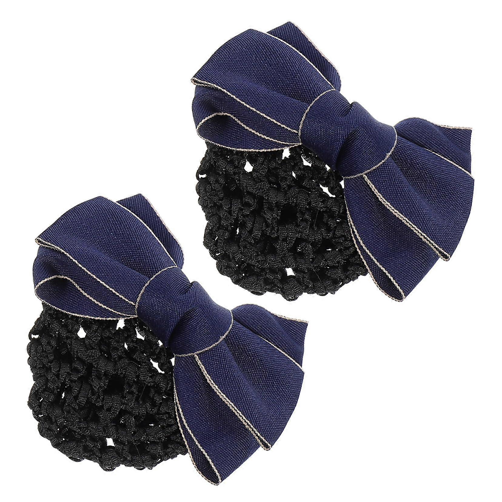 Hair Net Bun Cover with Secure Metal Clip, Elegant Braided Bowknot Snood for Women, 2pcs Blue