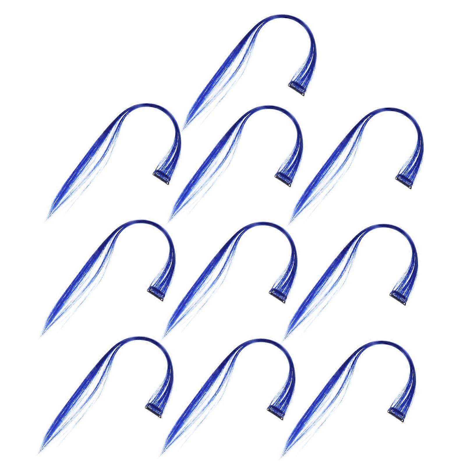 Blue Clip in Hair Extensions Straight Heat Resistant Synthetic Hairpiece for Cosplay Parties 10pcs