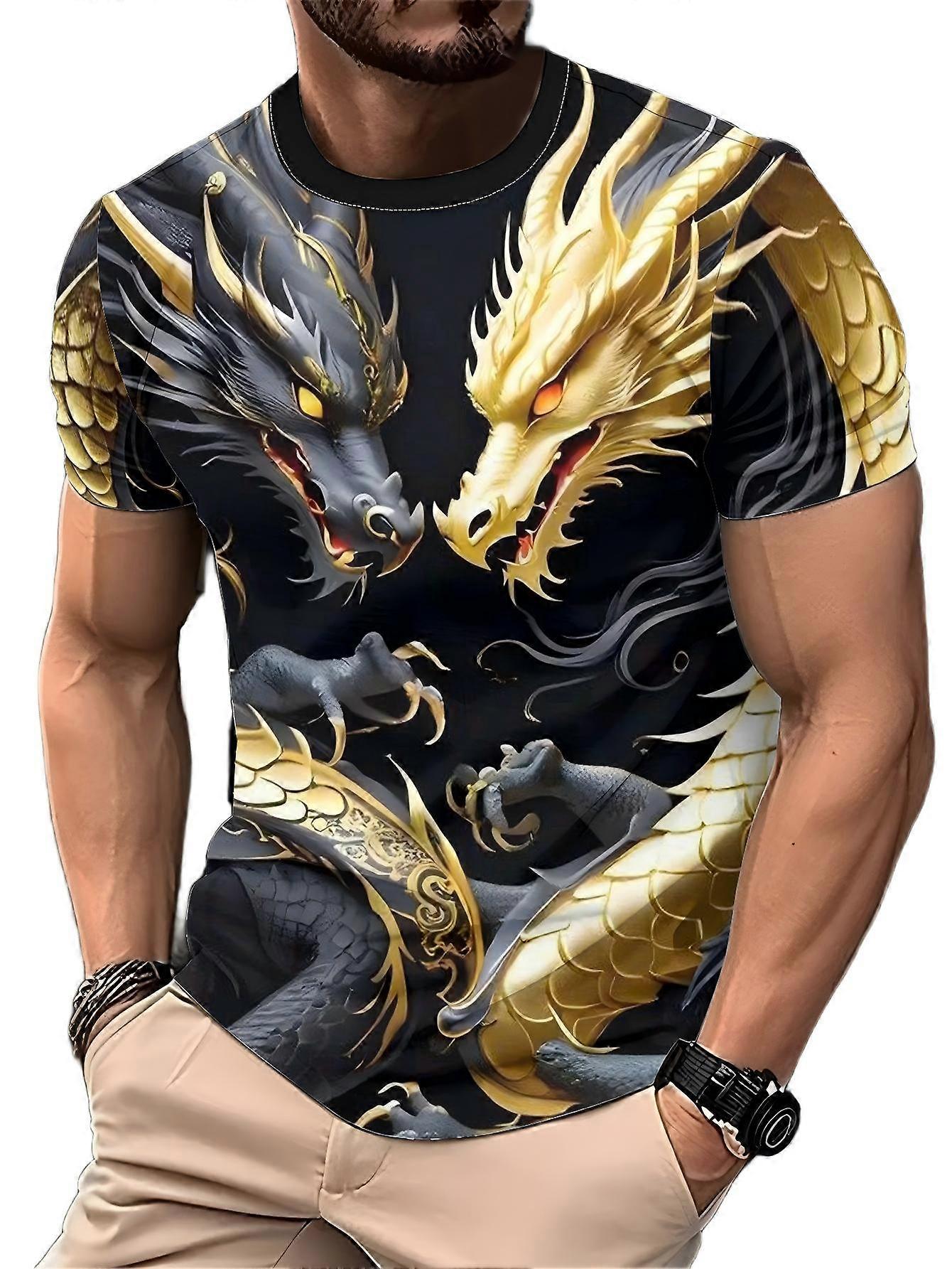 Men’s 3D Bold Graphic T Shirt Black And Gold Dragon Print Casual Streetwear Tee