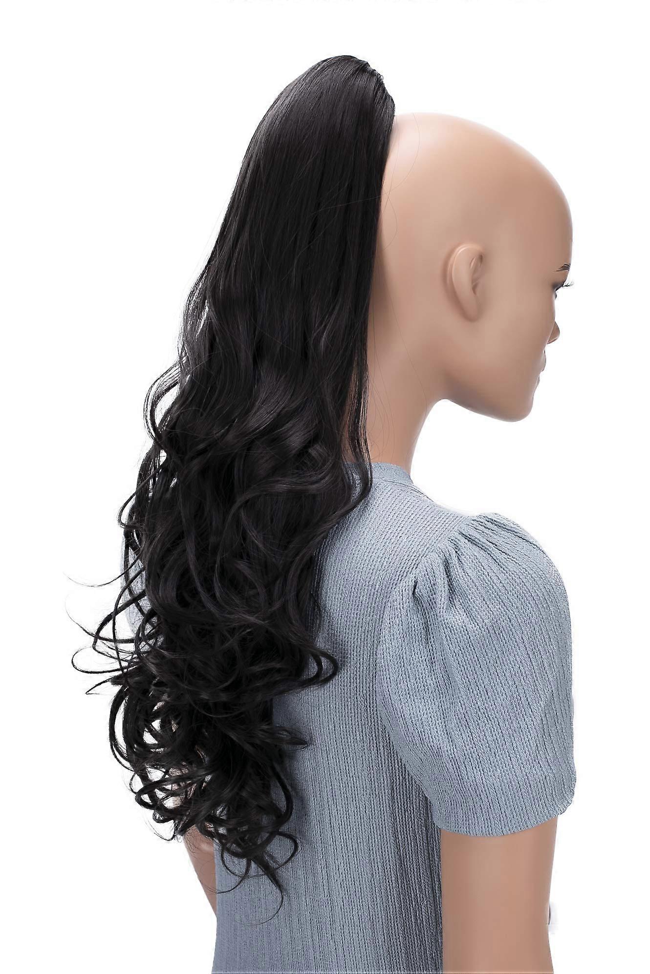 24 Inch Dark Brown Long Wavy Clip In Ponytail Extension, Heat Resistant Synthetic Hairpiece for Natural Look