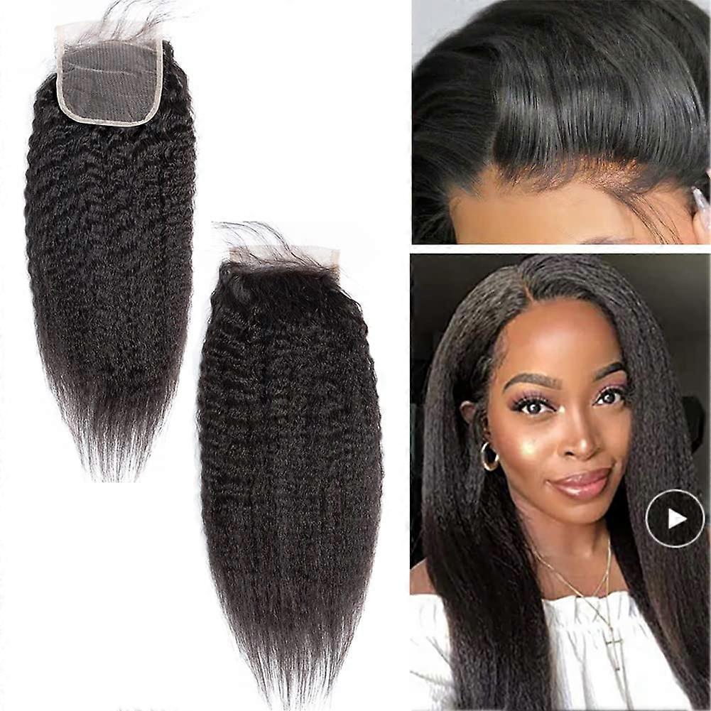 Italian Coarse Yaki Straight Curly 4x4 Transparent Lace Closure Afro Kinky Straight Human Hair Piece with Baby Hair for Black Women
