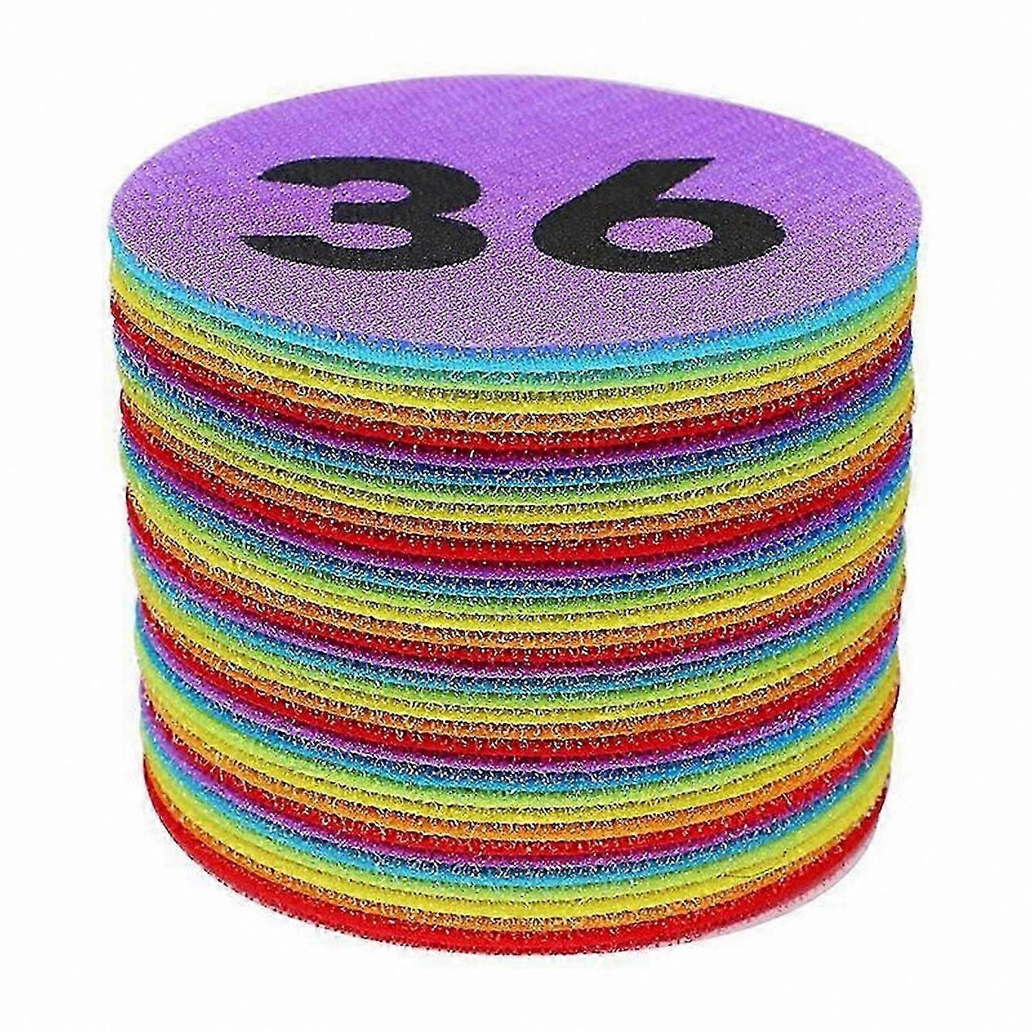 Numbered Classroom Floor Markers 1-36 - 4 Inch Rug Dots for Kindergarten & Preschool - Multicolour Educational Sitting Spots - 36 Pack Set