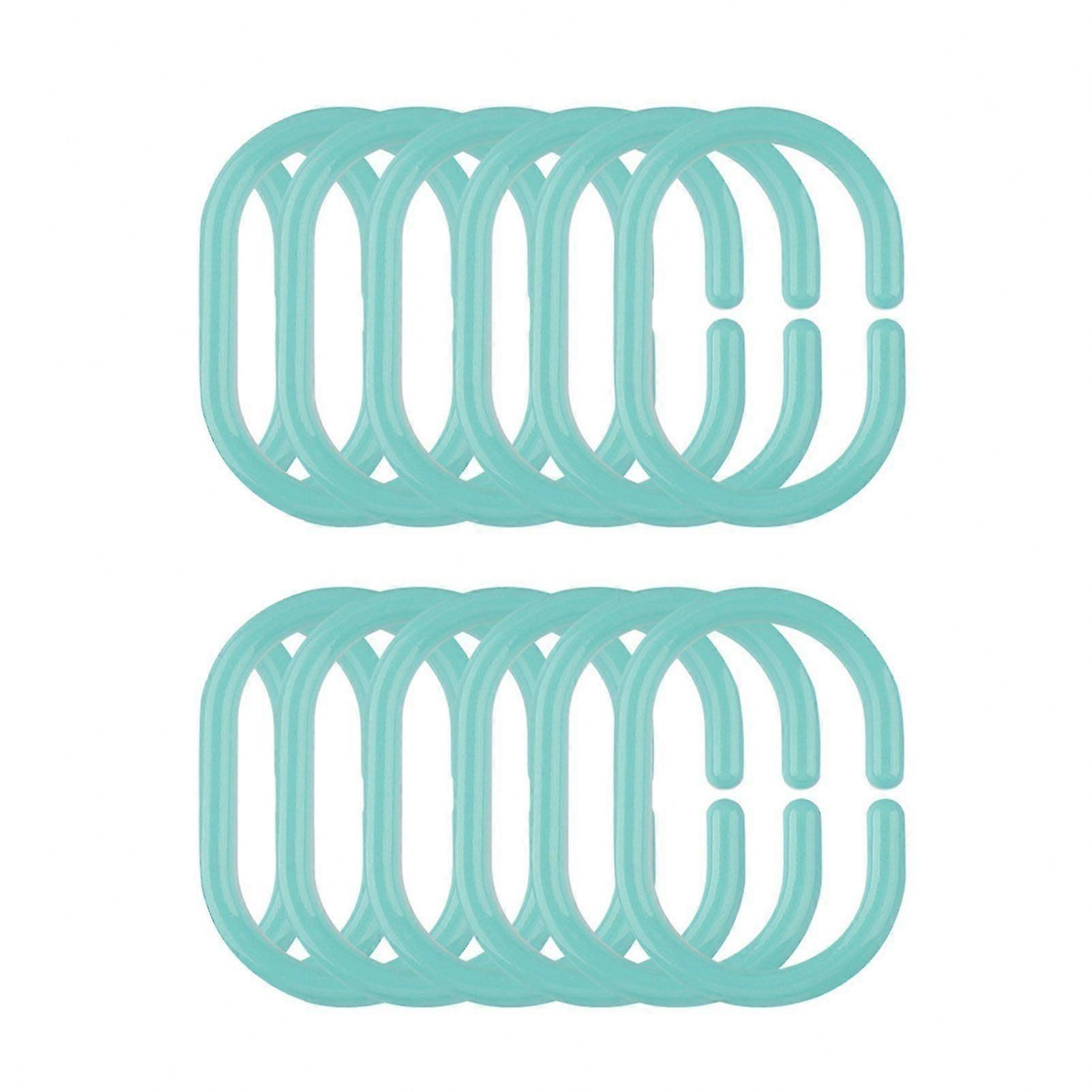 12Pcs Universal C-Shaped Shower Curtain Hooks - Heavy Duty Bathroom Rod Ring Hangers - Durable Flexible Plastic, Light Blue