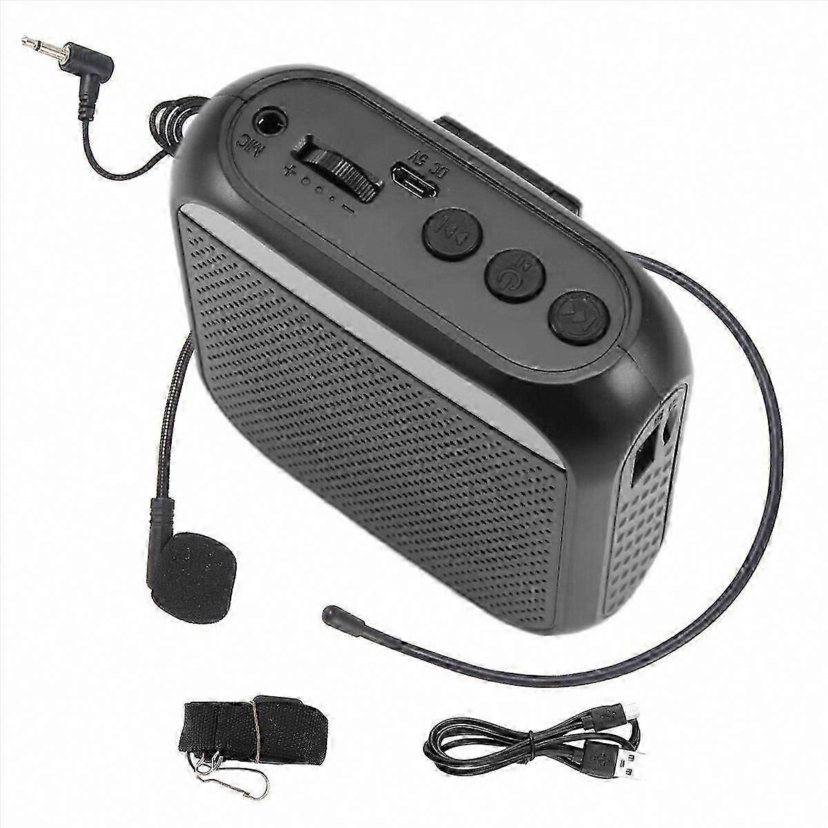 Portable Rechargeable Voice Amplifier - Mini Wired Microphone Headset | Lightweight Personal Speaker for Teachers, Tour Guides & Classroom - Black