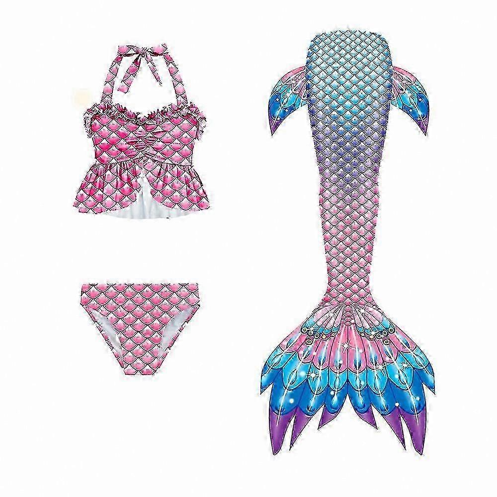 3-Piece Girls Mermaid Tail Swimsuit Set | Ariel Cosplay Costume with Fantasy Scale Print - Perfect for Beach, Pool & Summer Holidays