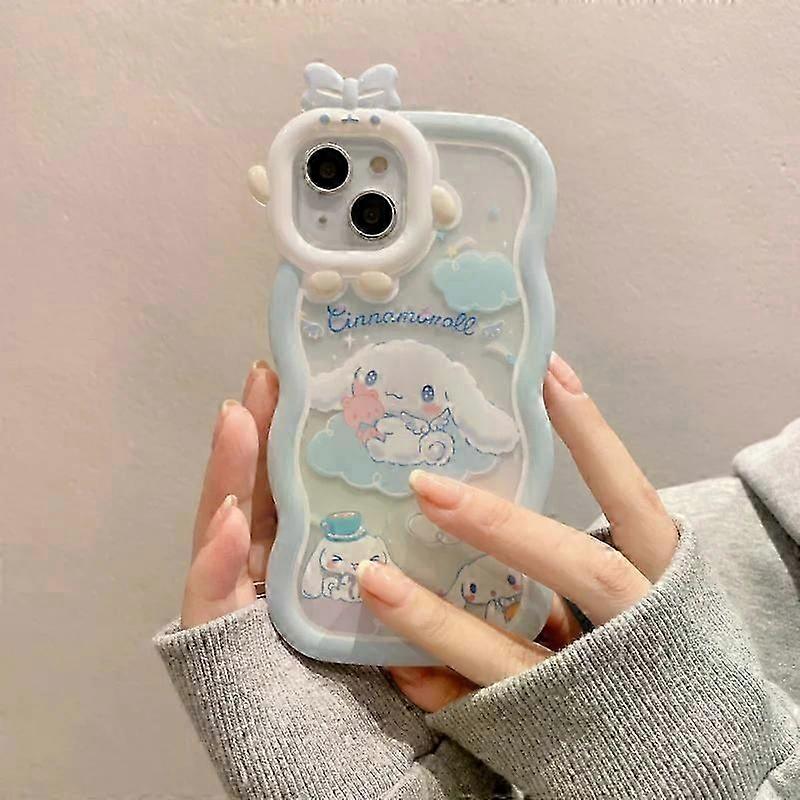 Kawaii Cinnamoroll Phone Case - Cute 3D Character Protective Shell | For 11 12 13 14 15 Pro Max, Blue | Shockproof Cover with Bracelet Holder