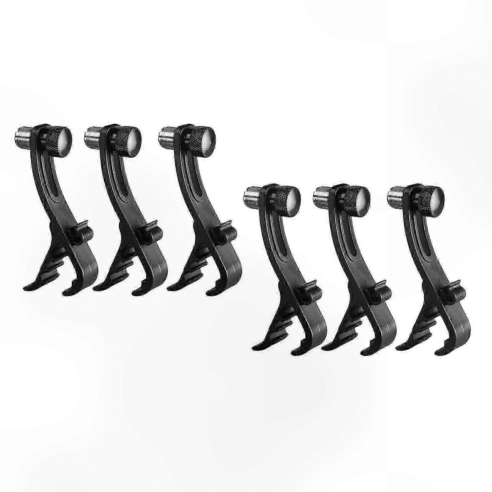 6x Shockproof Microphone Drum Rim Clip for Tom and Snare Drums This drum clamp mounts securely to the rim of most snare and tom drums. It features adjustable height and a swivel design, offering a simple solution for miking these drums without floor-mounted microphone stands. The clamp includes three groove points to accommodate a wide range of tom and snare drum sizes and preferred microphone positions. It is easy to use and allows quick, precise microphone adjustments without disturbing the stand. Specifications: Material: Metal, Plastic Package Includes: 6 Drum Microphone Clamps