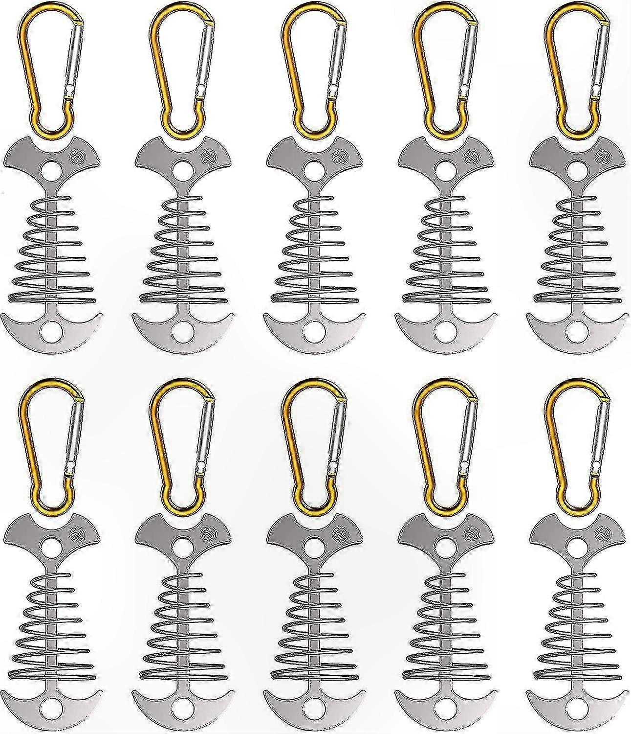 Aluminum Tent Rope Tightener with Clips | Outdoor Camping Accessory for Tents and Tarps (Silver, 10 Pack)