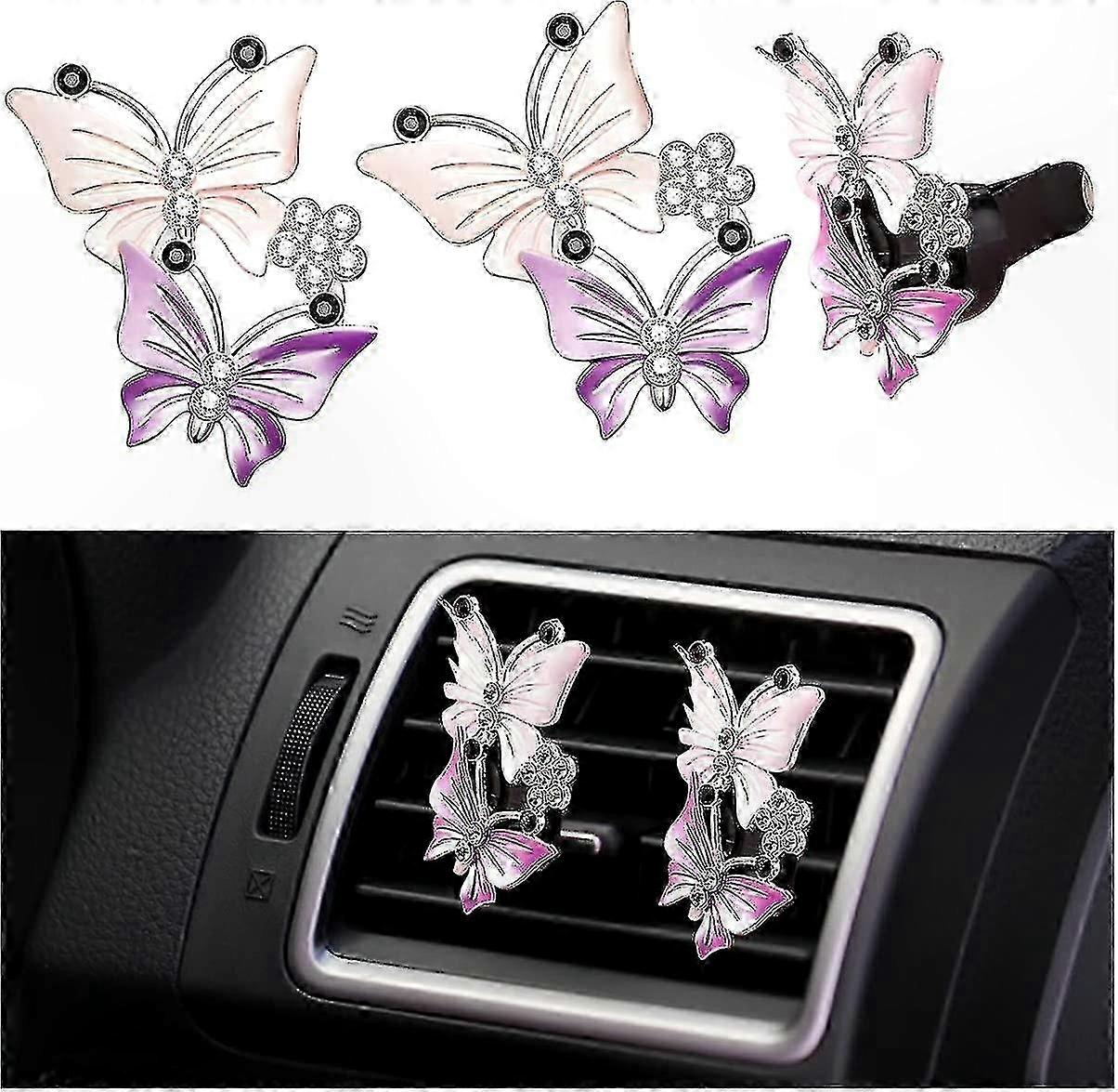 2pcs Sparkling Butterfly Vent Clips, Rhinestone Car Accessories for Women, Crystal Decorative Air Freshener Clips for Vehicle Interior Styling