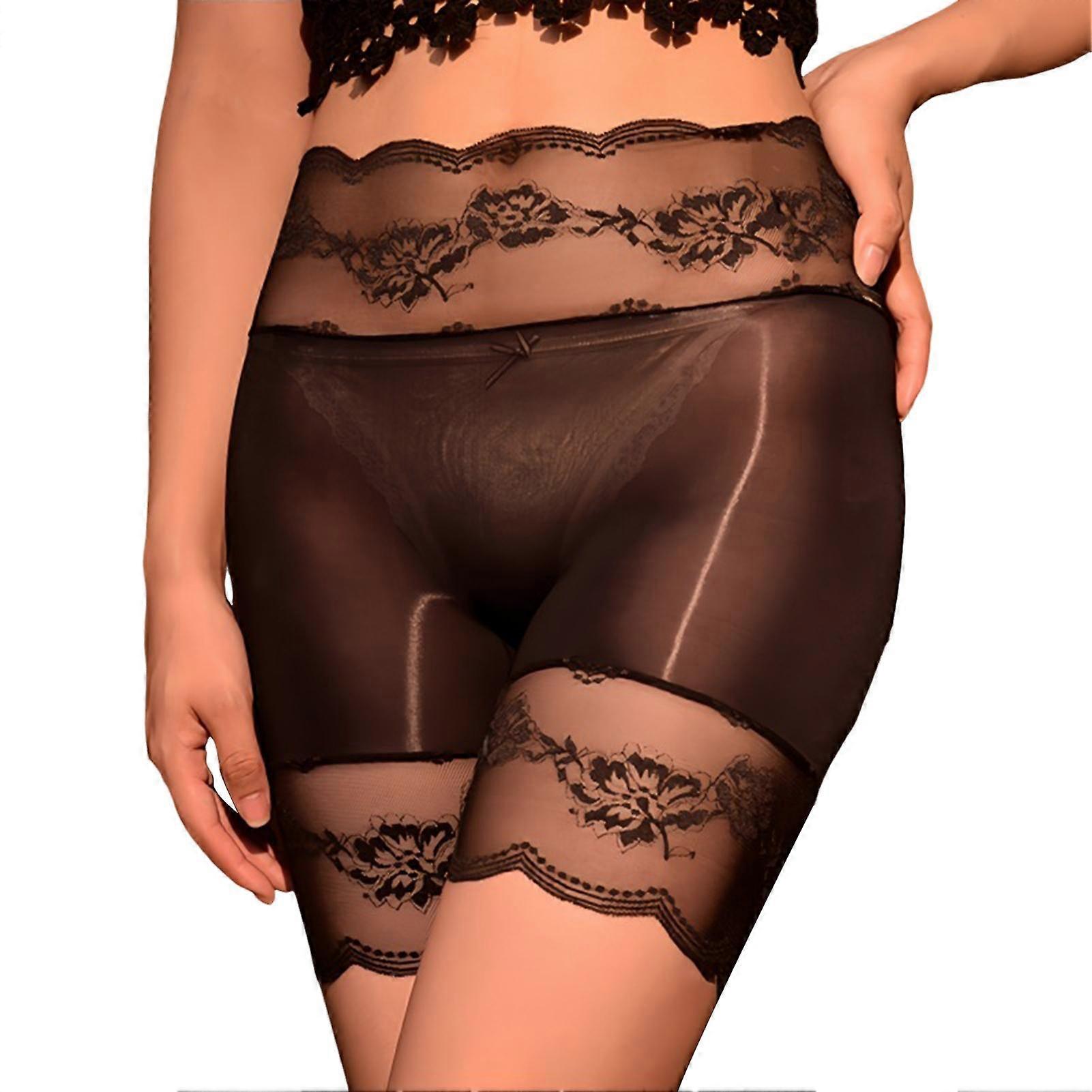 Women Underpants Seamless Glossy Surface Lace High Waist Slim Fit High Elasticity Safety Pants